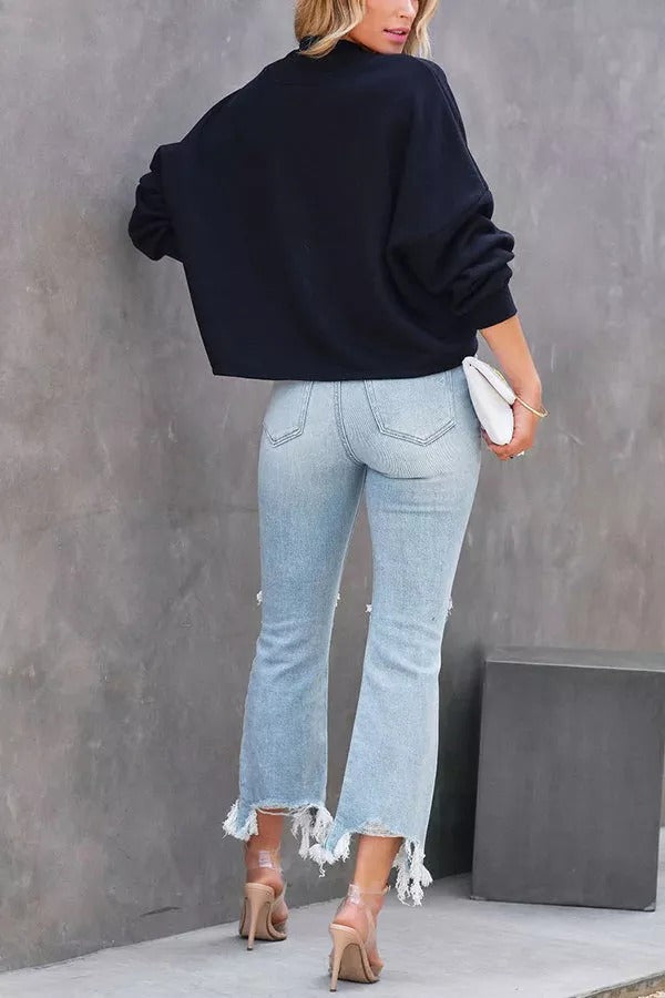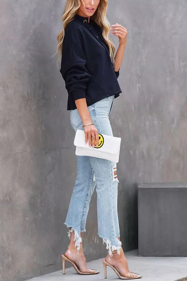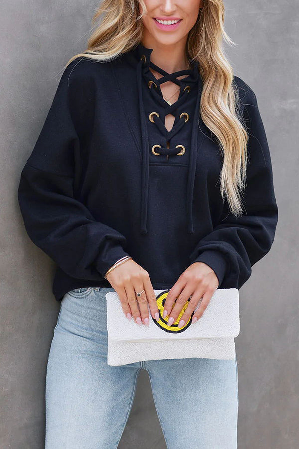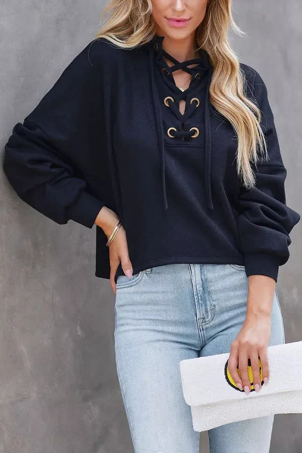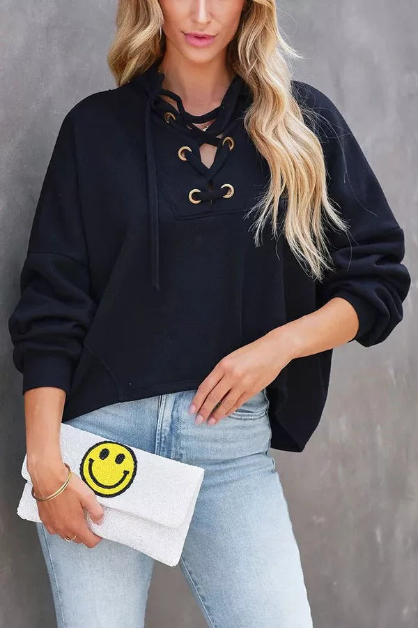 Selena Lace Up Hooded Pullover Sweater
