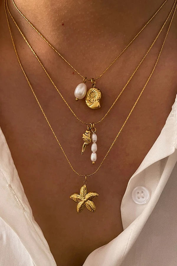 Simple Stainless Steel Conch Starfish Pearl Exquisite Mix and Match Necklace