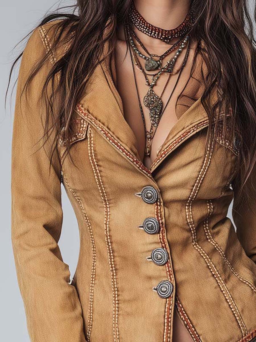 The Slim-fit Vintage-style Washed Khaki Denim Jacket is a must-have for those who appreciate classic style with a contemporary twist. Its versatile design allows it to be dressed up or down, making it a reliable staple in any fashion-forward wardrobe.