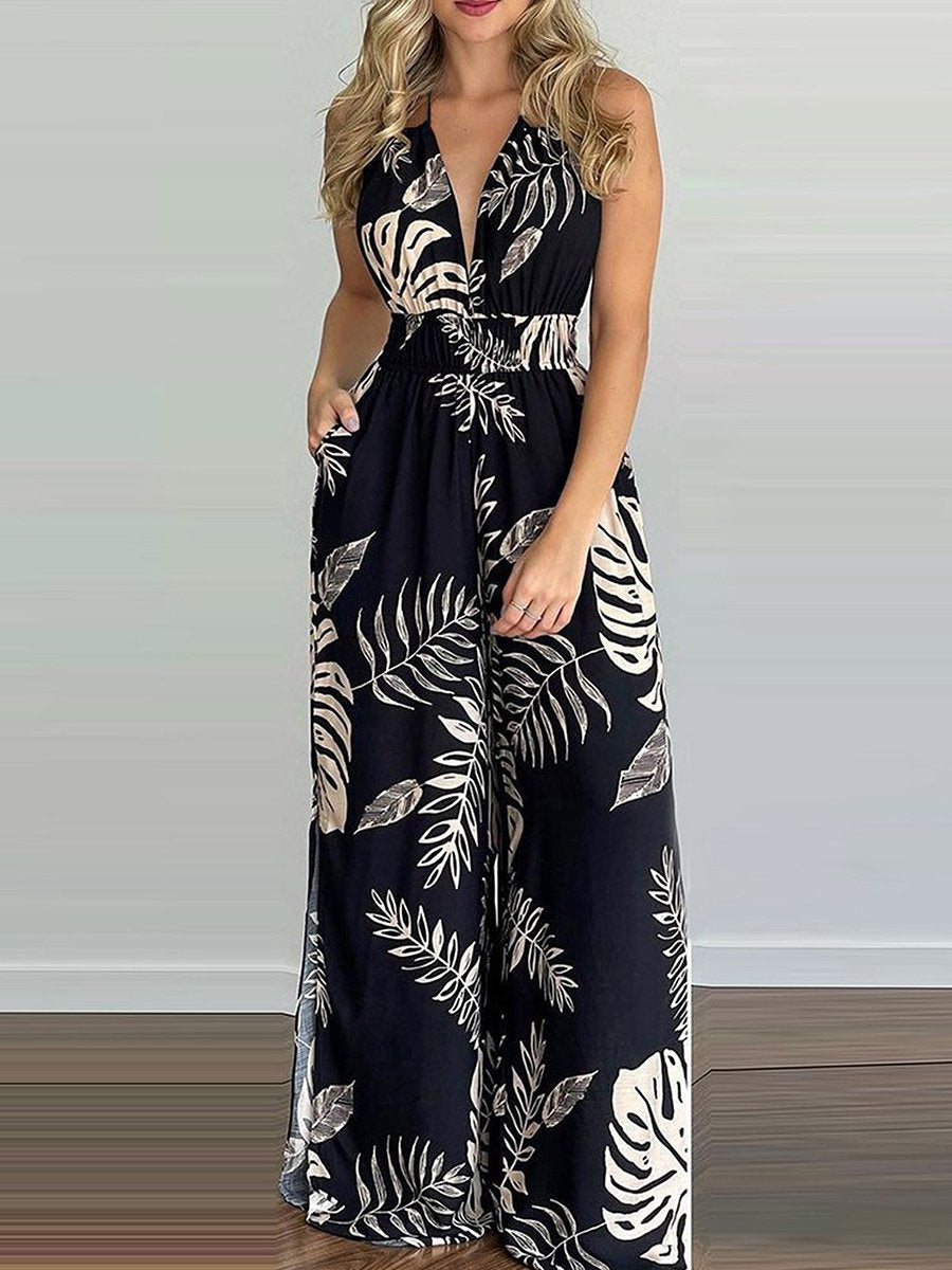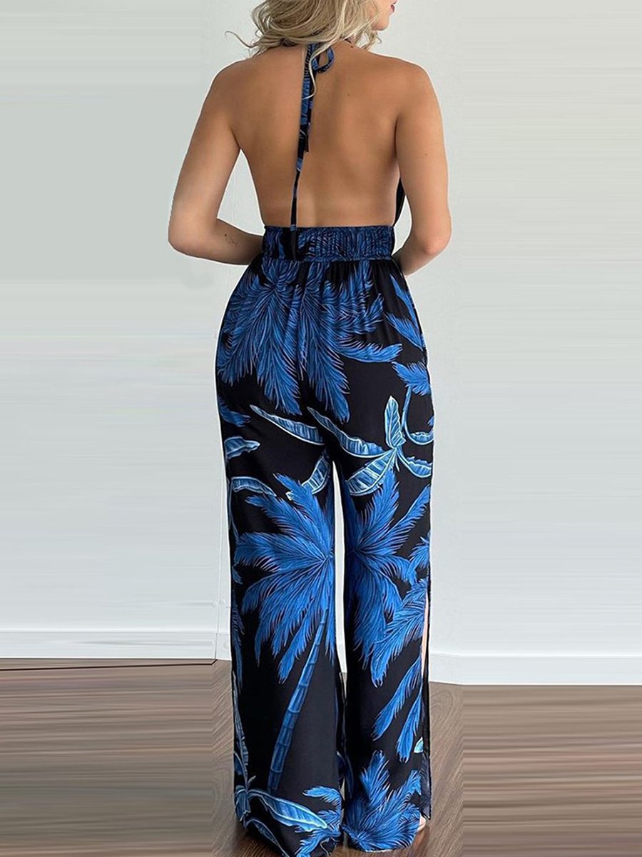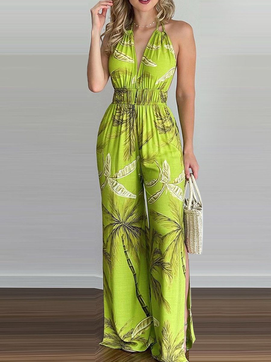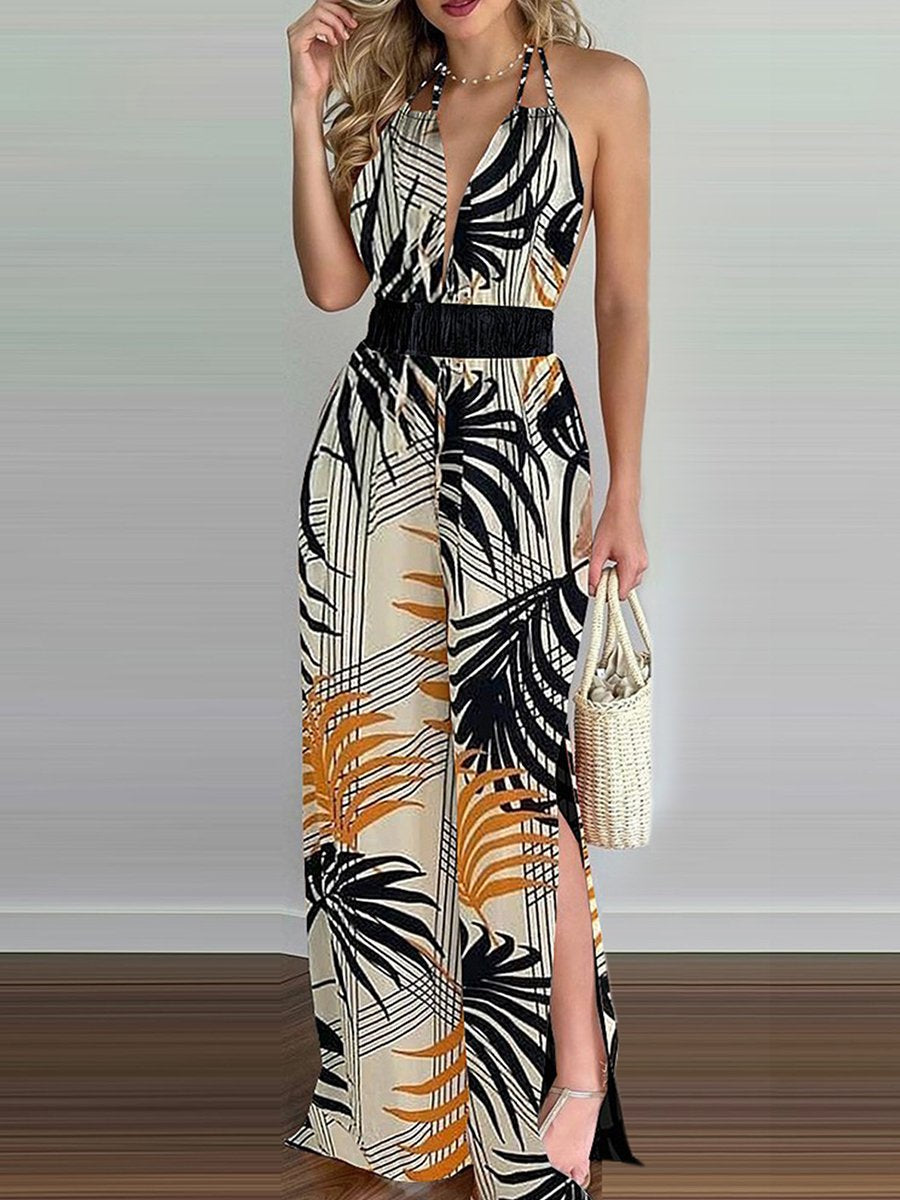 Sling Leaf Print Jumpsuit