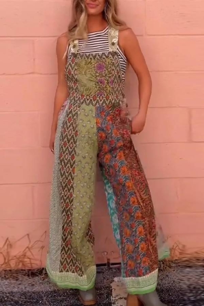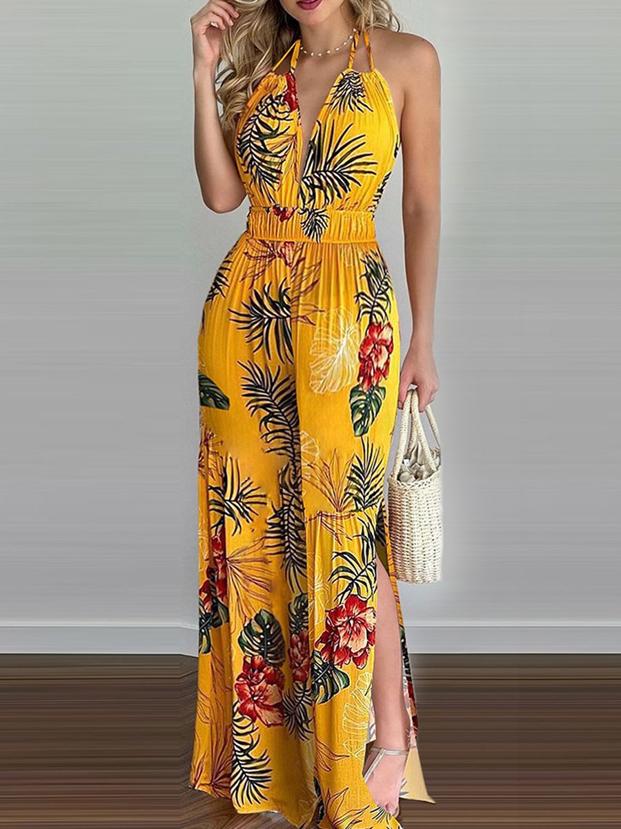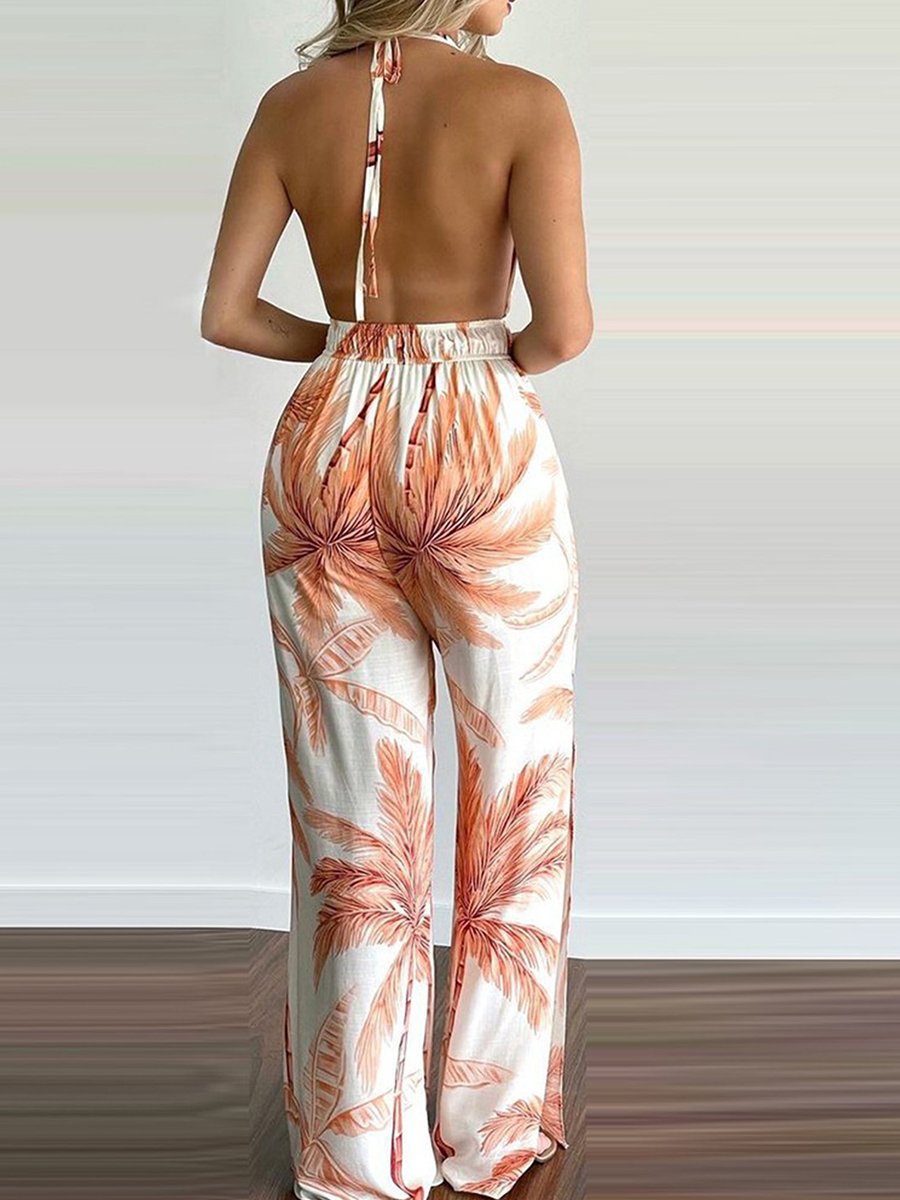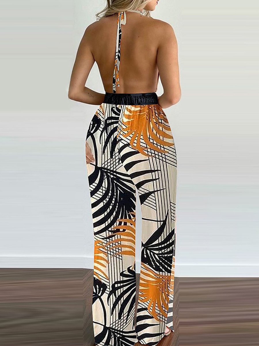 Sling Leaf Print Jumpsuit