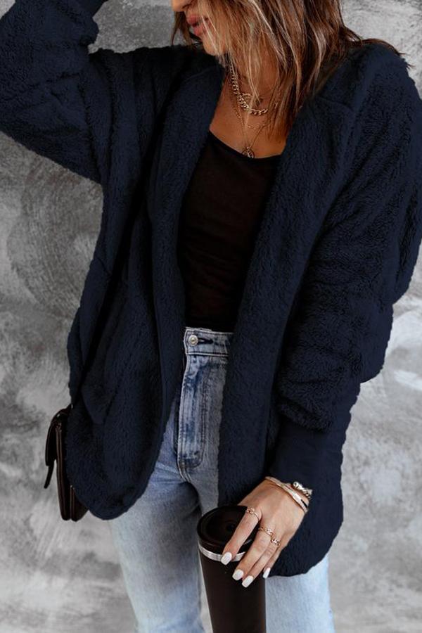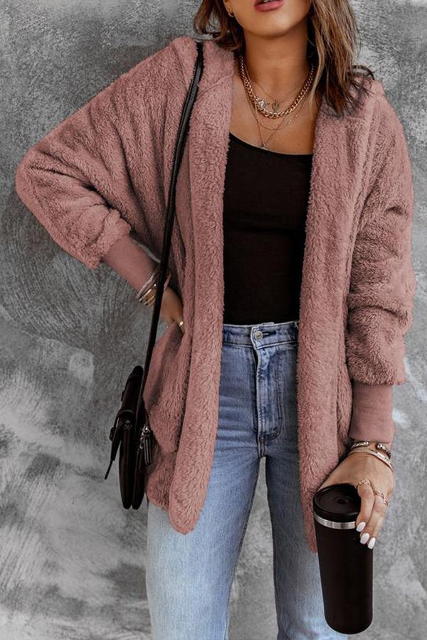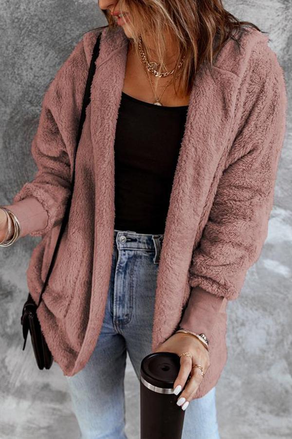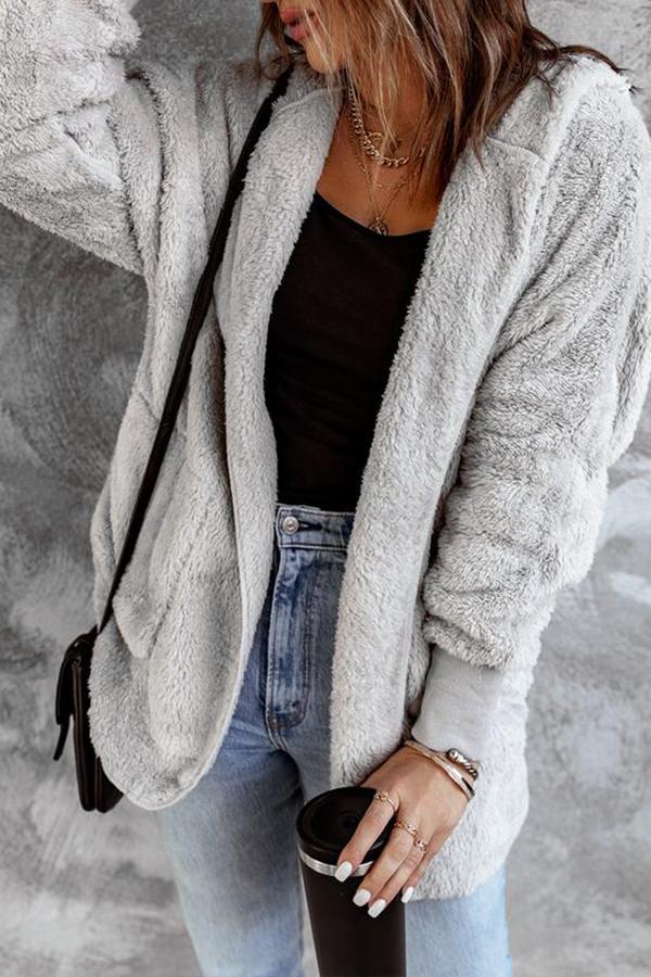 Soft Fleece Hooded Open Front Coat