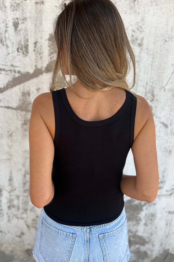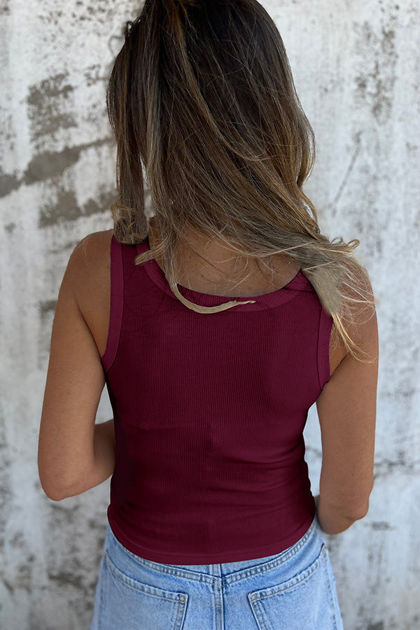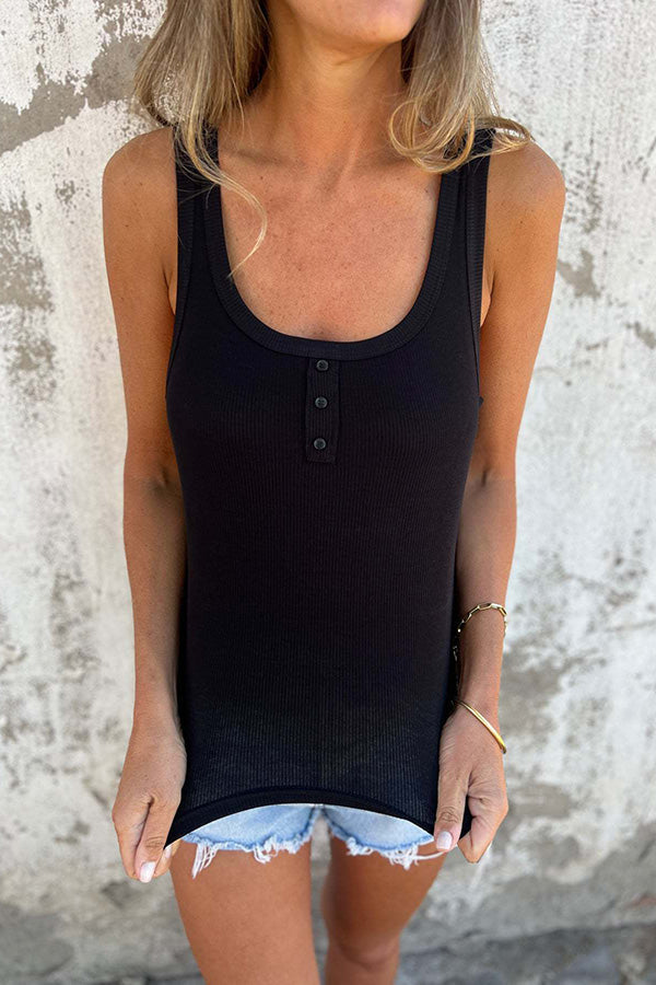 Solid Buttoned Stretch Rib Slim Fit Tank Top