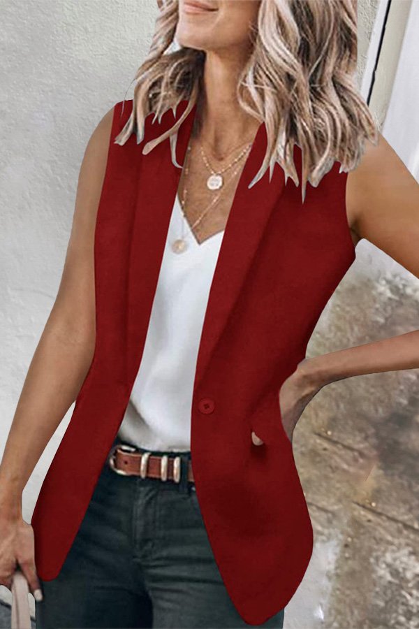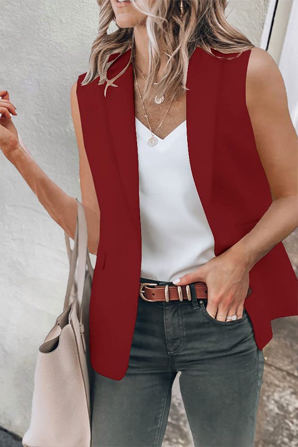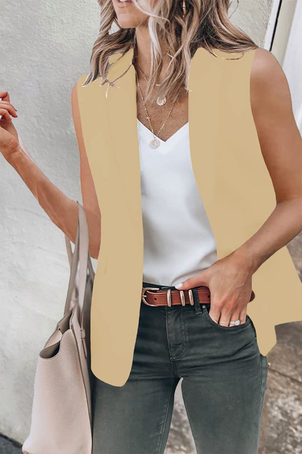 Solid Color Lapel Vest Blazer