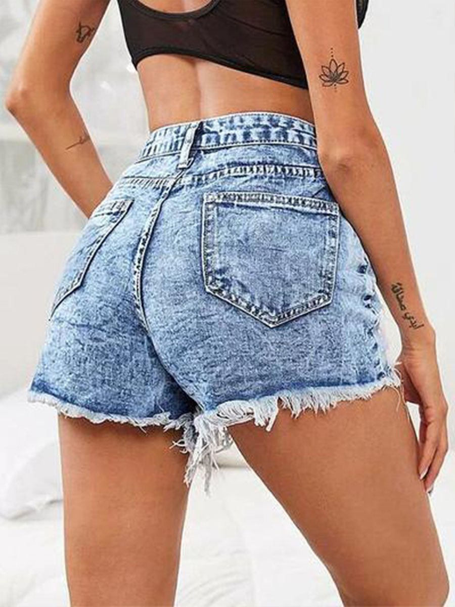 Solid High Waist Ripped Denim Shorts