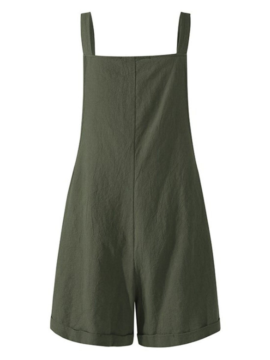 Solid Suspender Straps Loose Bibbed Romper