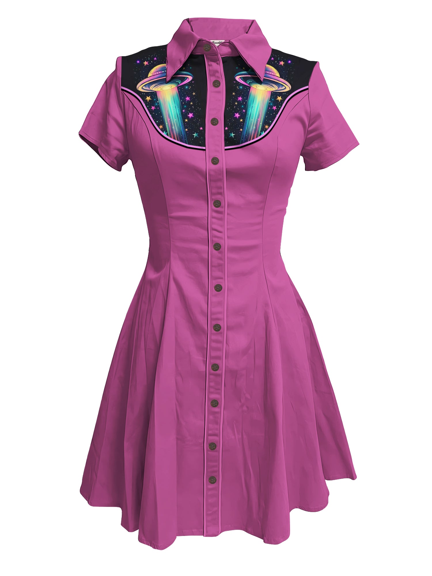 Spaceship And Stars - 100% Cotton Double Pocket Dress
