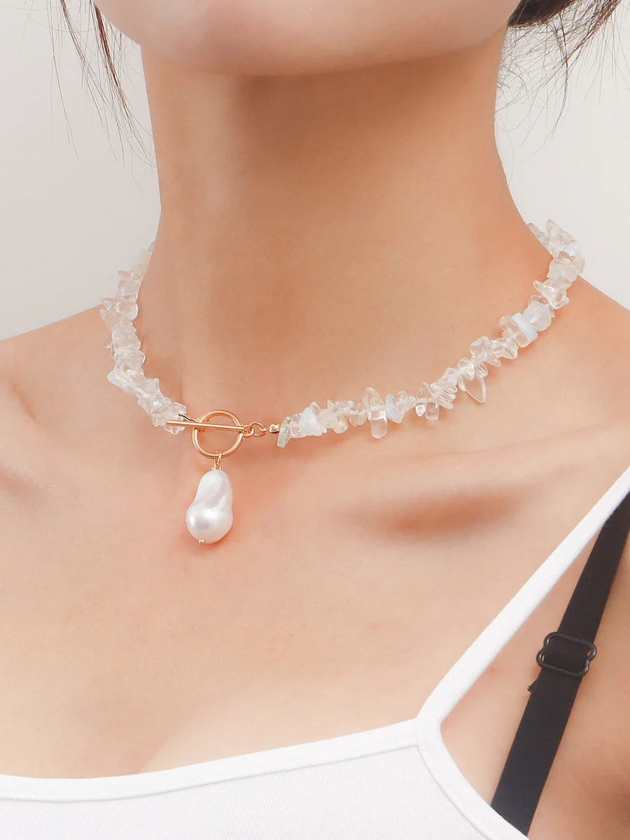 Statement Coral Chip & Pearl Necklace