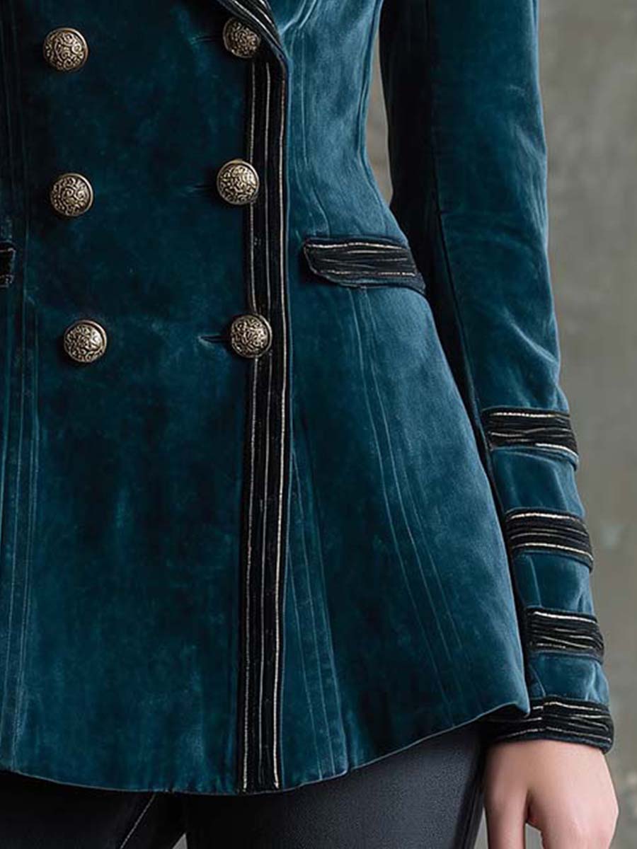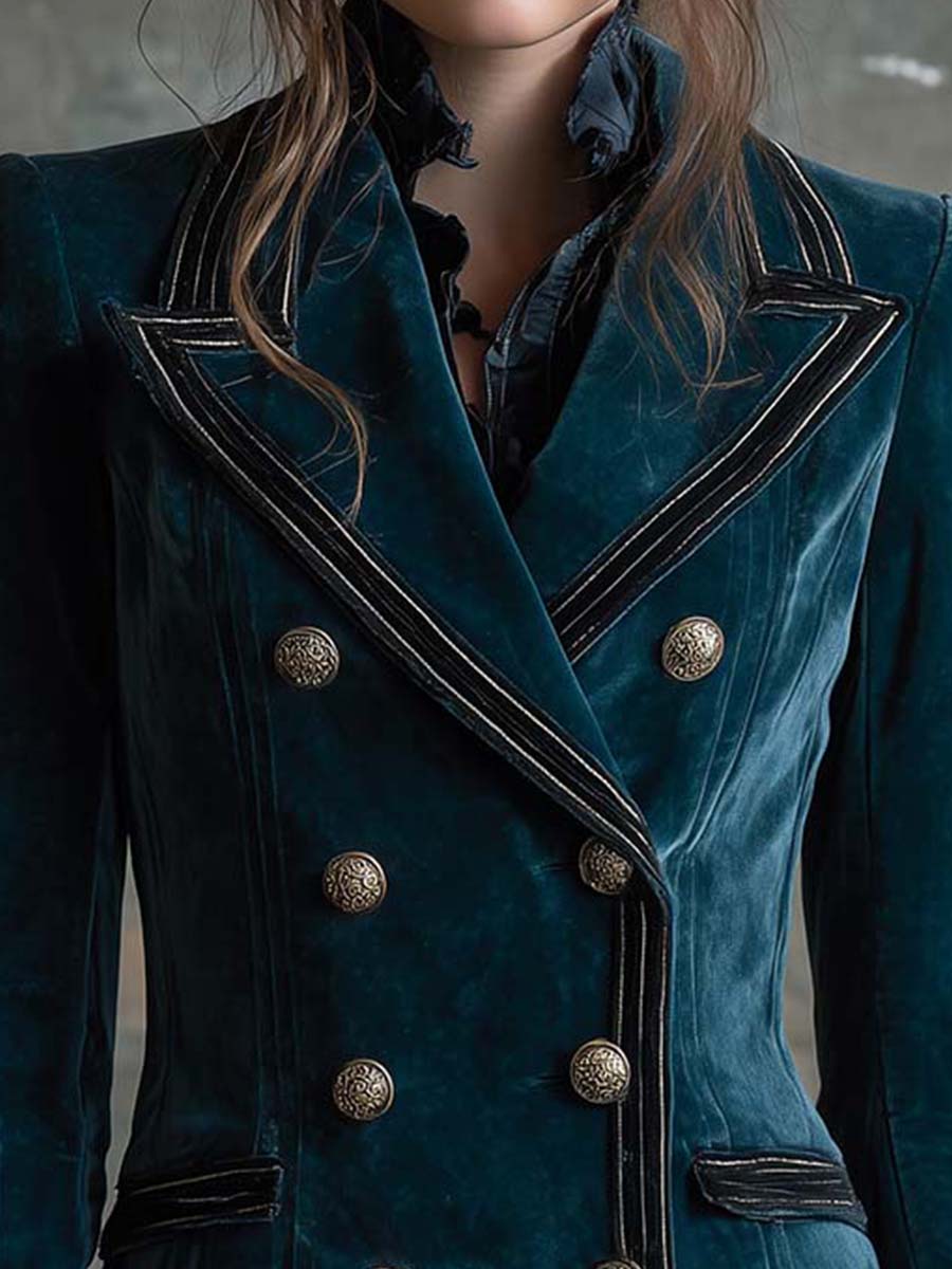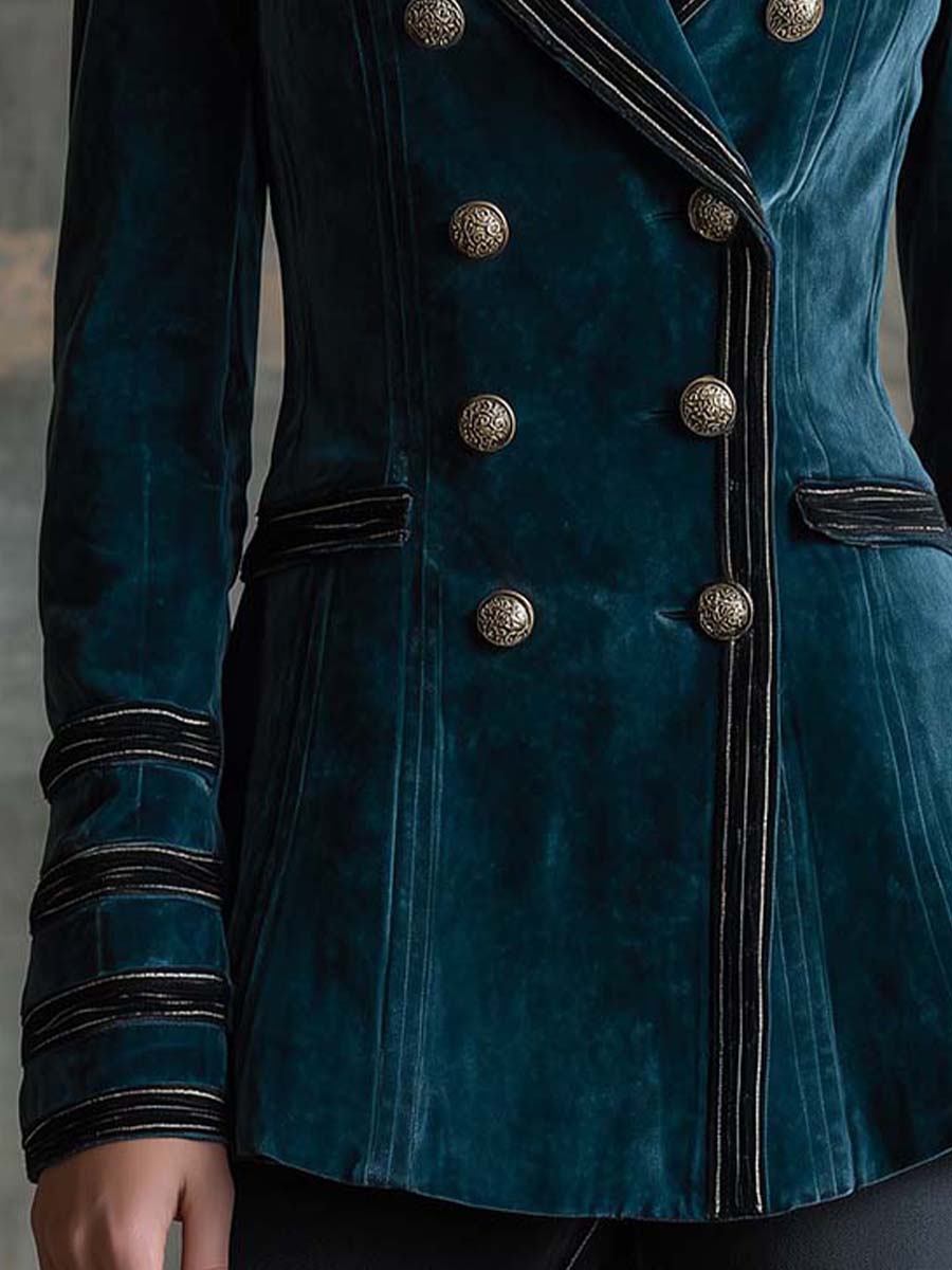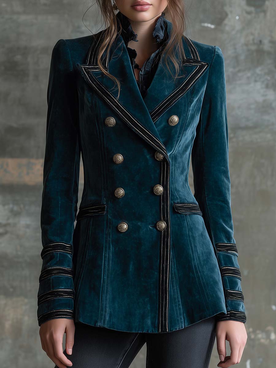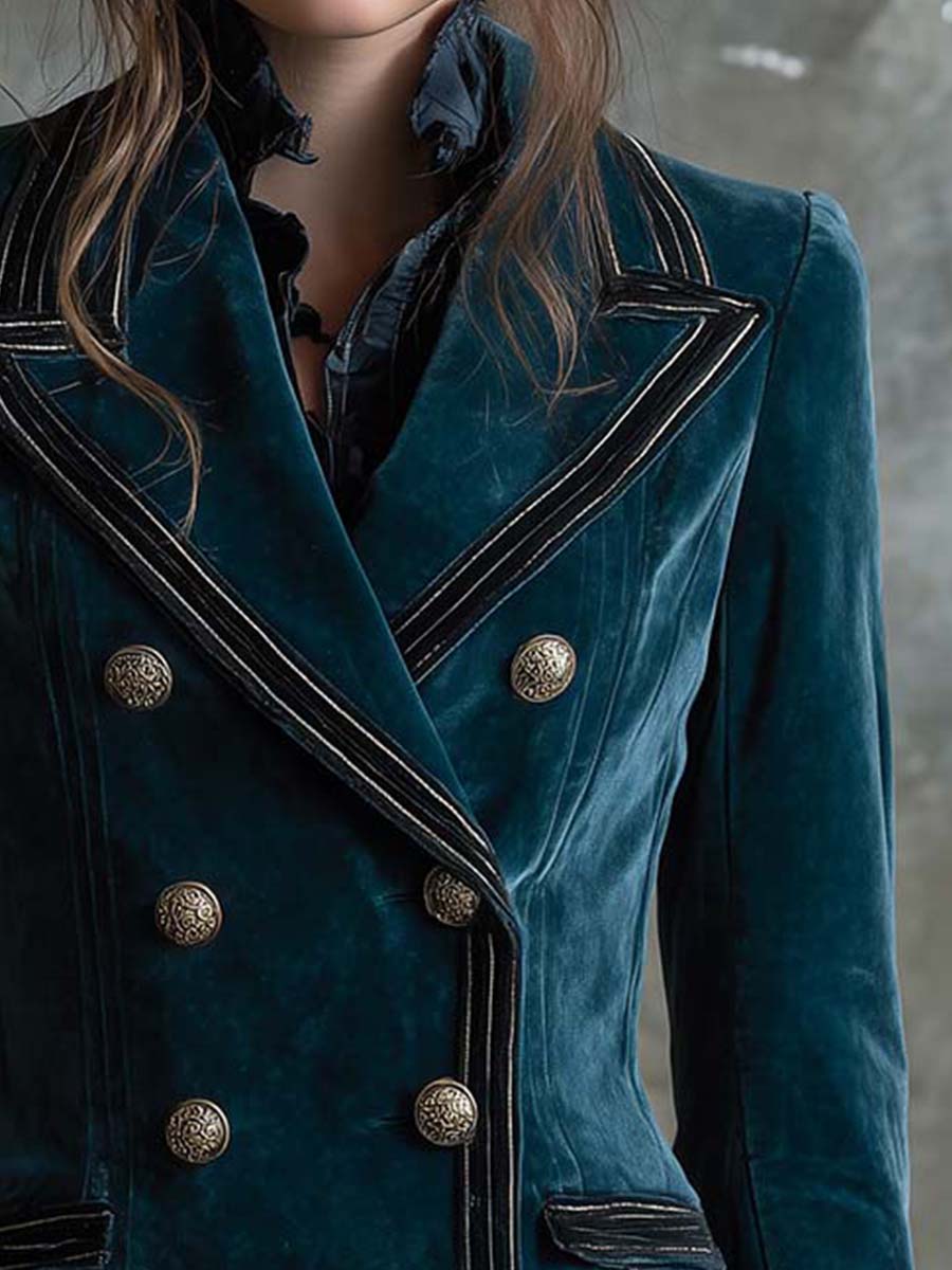 Structured Velvet Military Blazer With Contrast Trim - Dark Teal