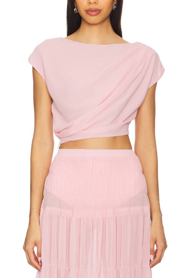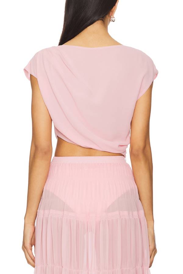Stunning Chiffon Ruched Shoulder Short Sleeve Crop Top