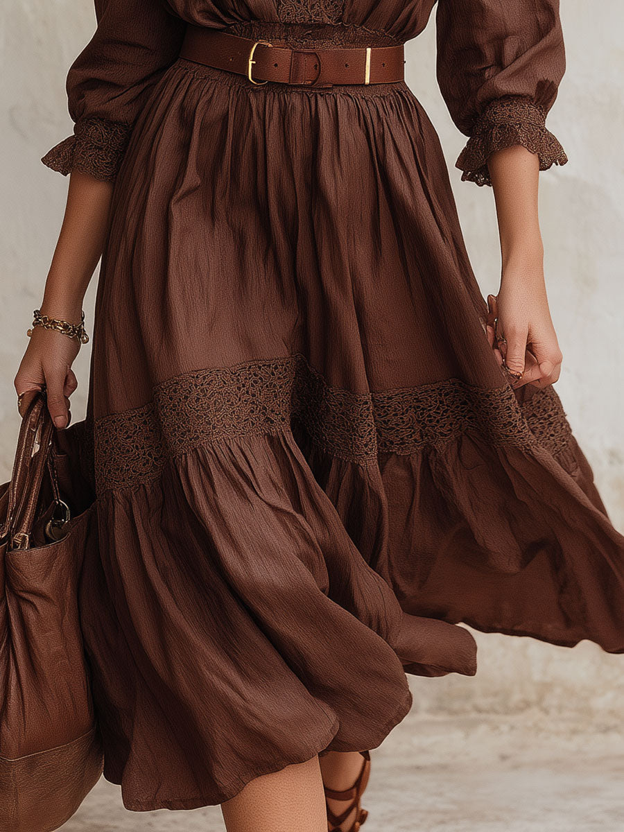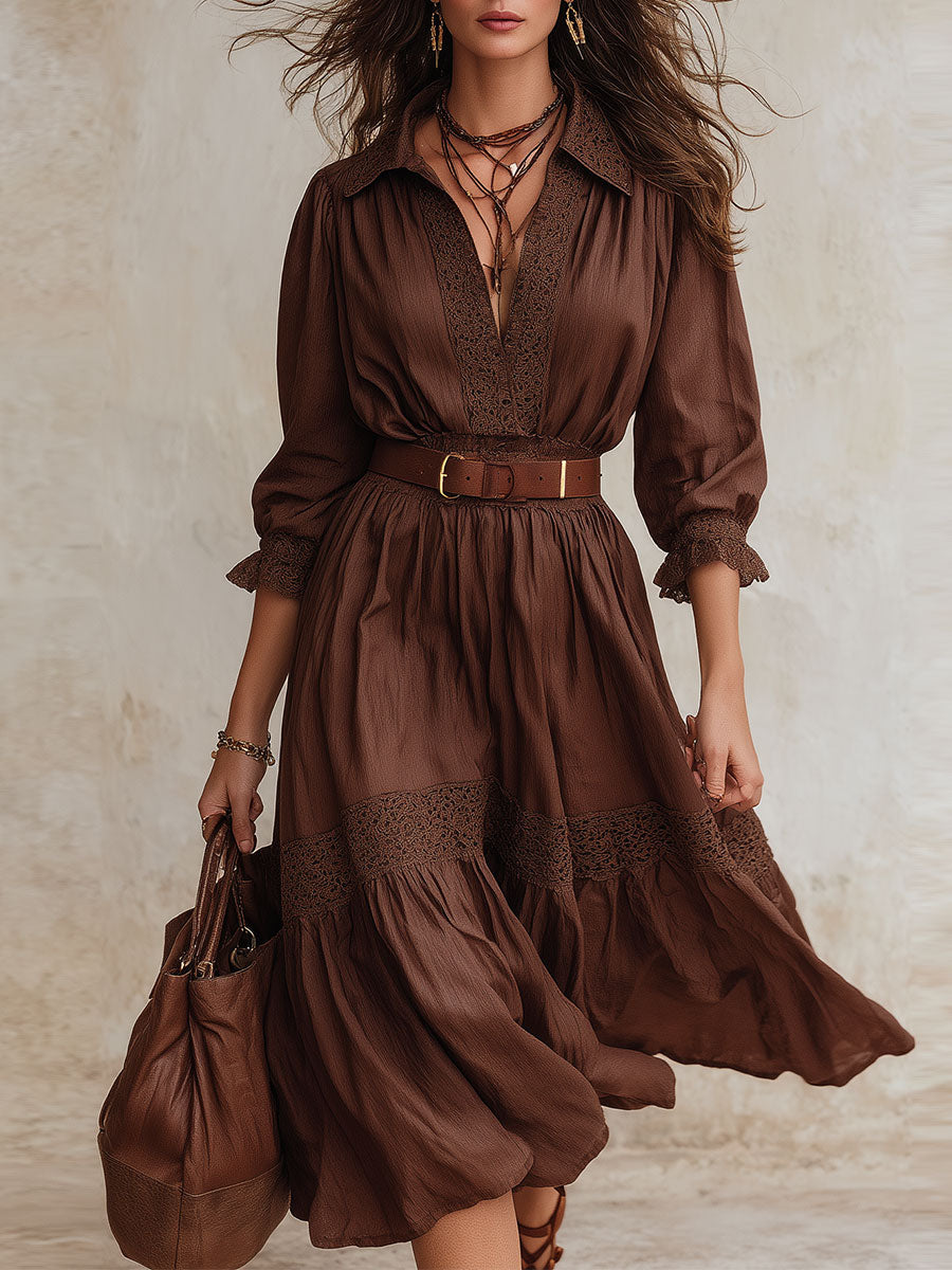 Stylish Lace Patchwork Shirt Midi Dress