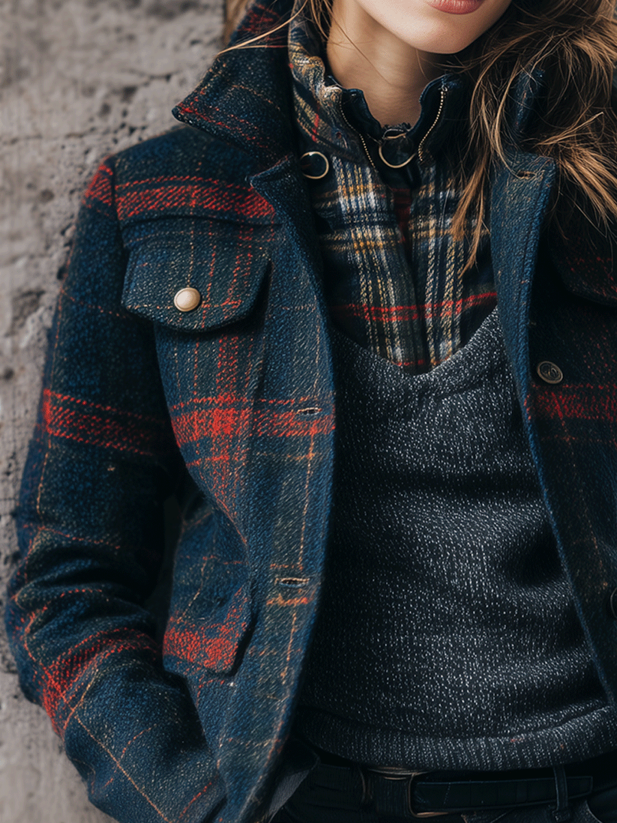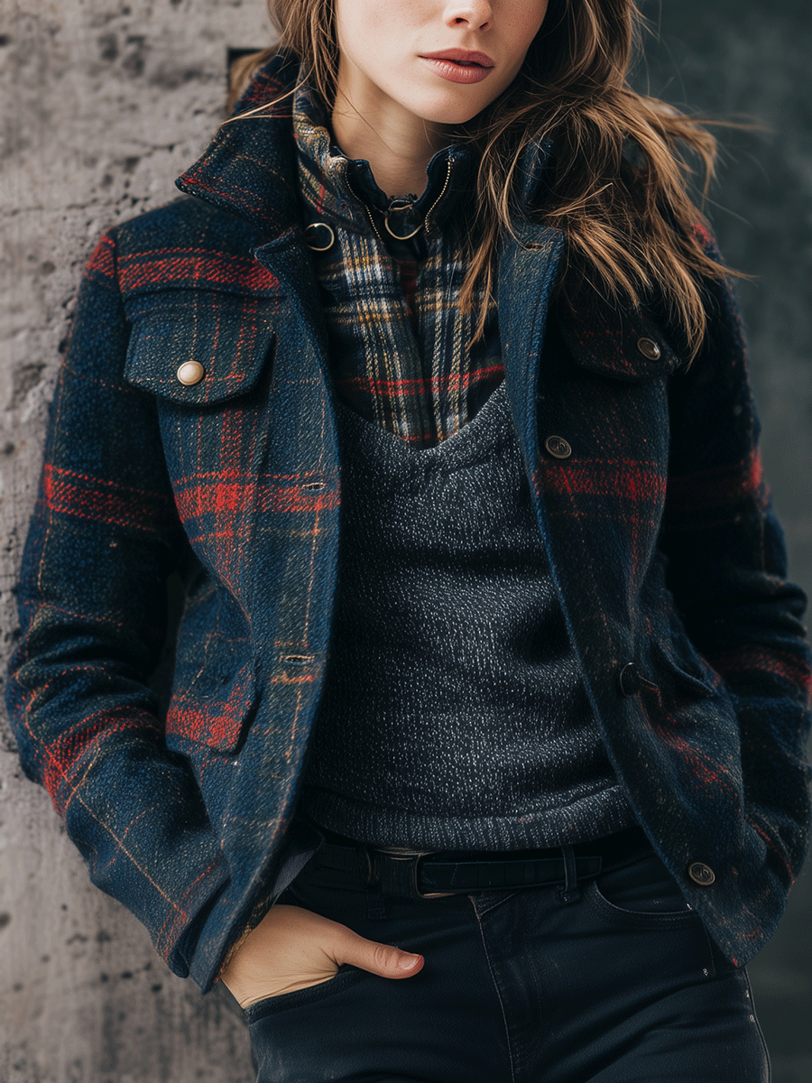This Stylish Navy Plaid Wool Jacket is a must-have for anyone looking to blend sophistication with comfort. Its high-quality construction and timeless design ensure it will be a favorite for years to come, suitable for various occasions and effortlessly elevating your fashion game.