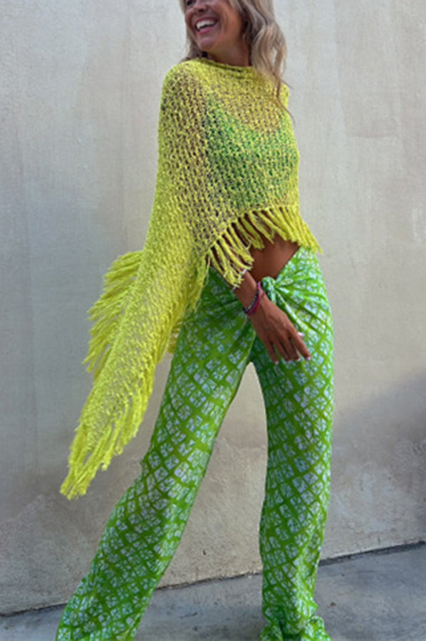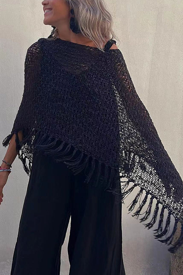 Sunset Breeze Hollow Out Tassel Knit Cover-up Top