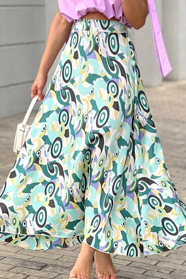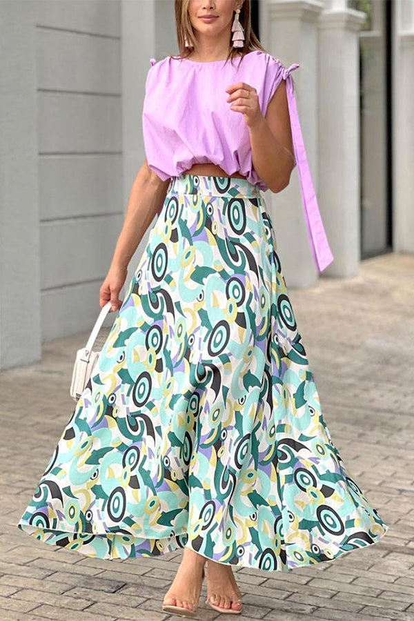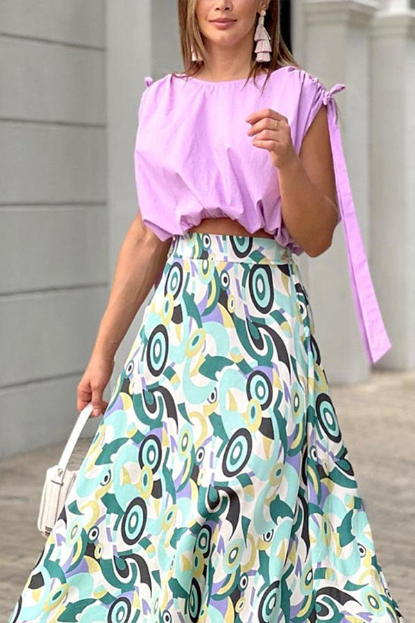 Taro Purple Short Top Printed Skirt Suit