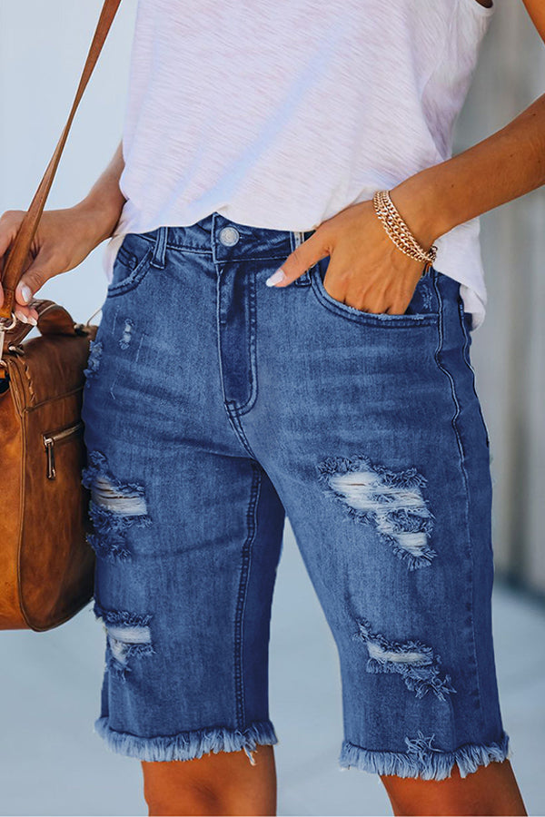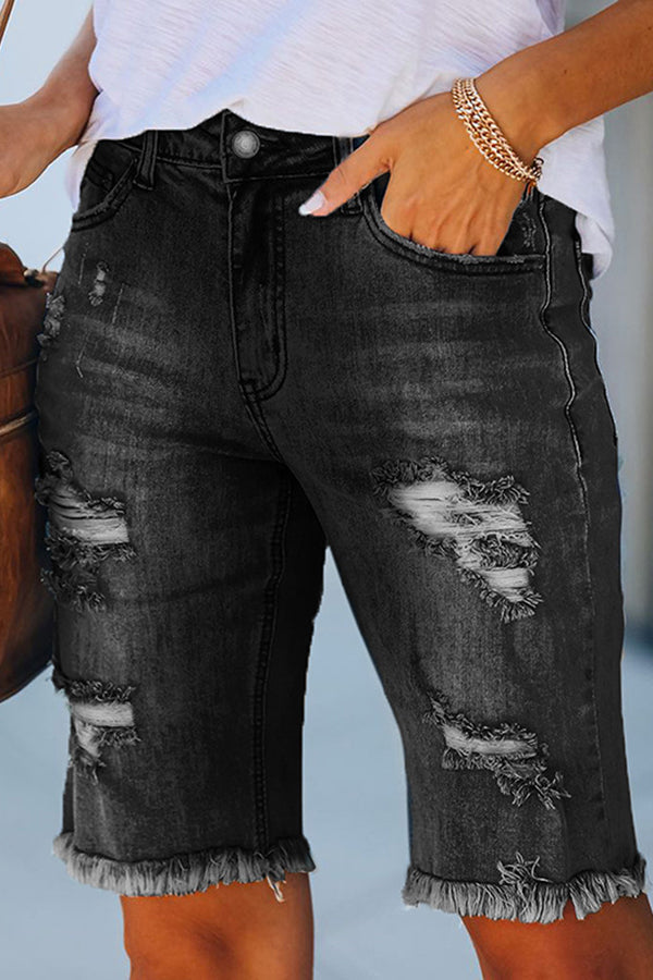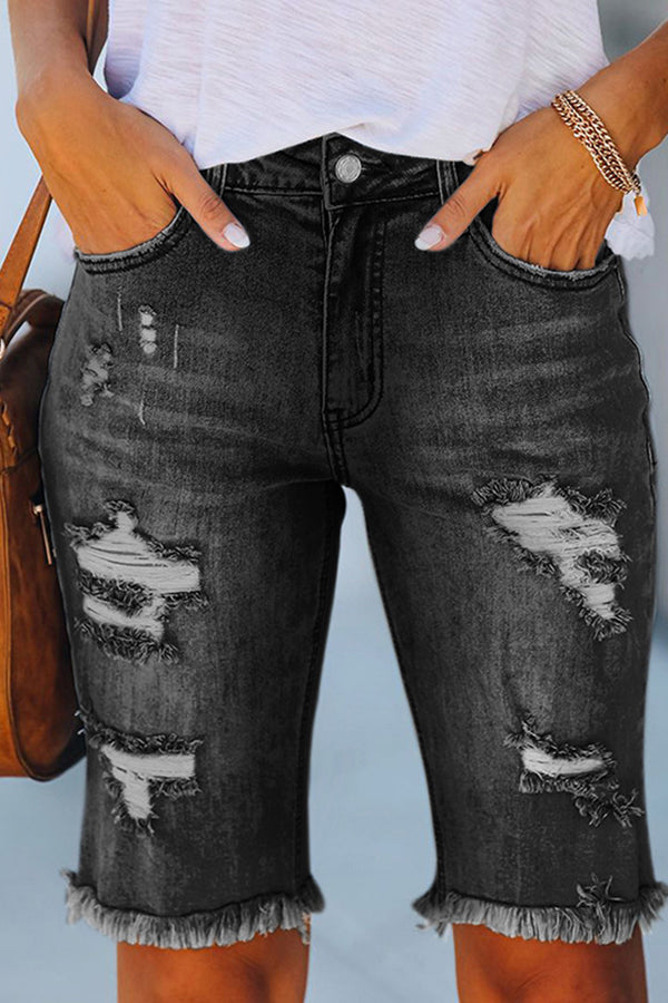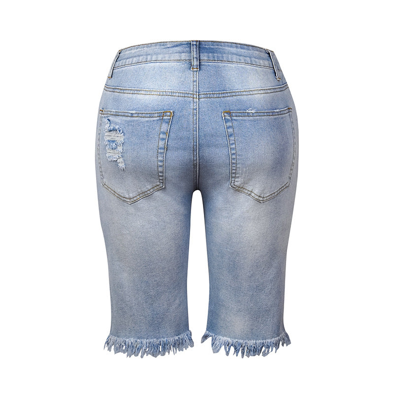 Tassel High Stretch Perforated Denim Shorts