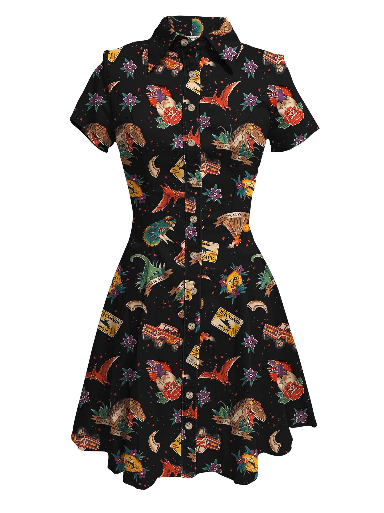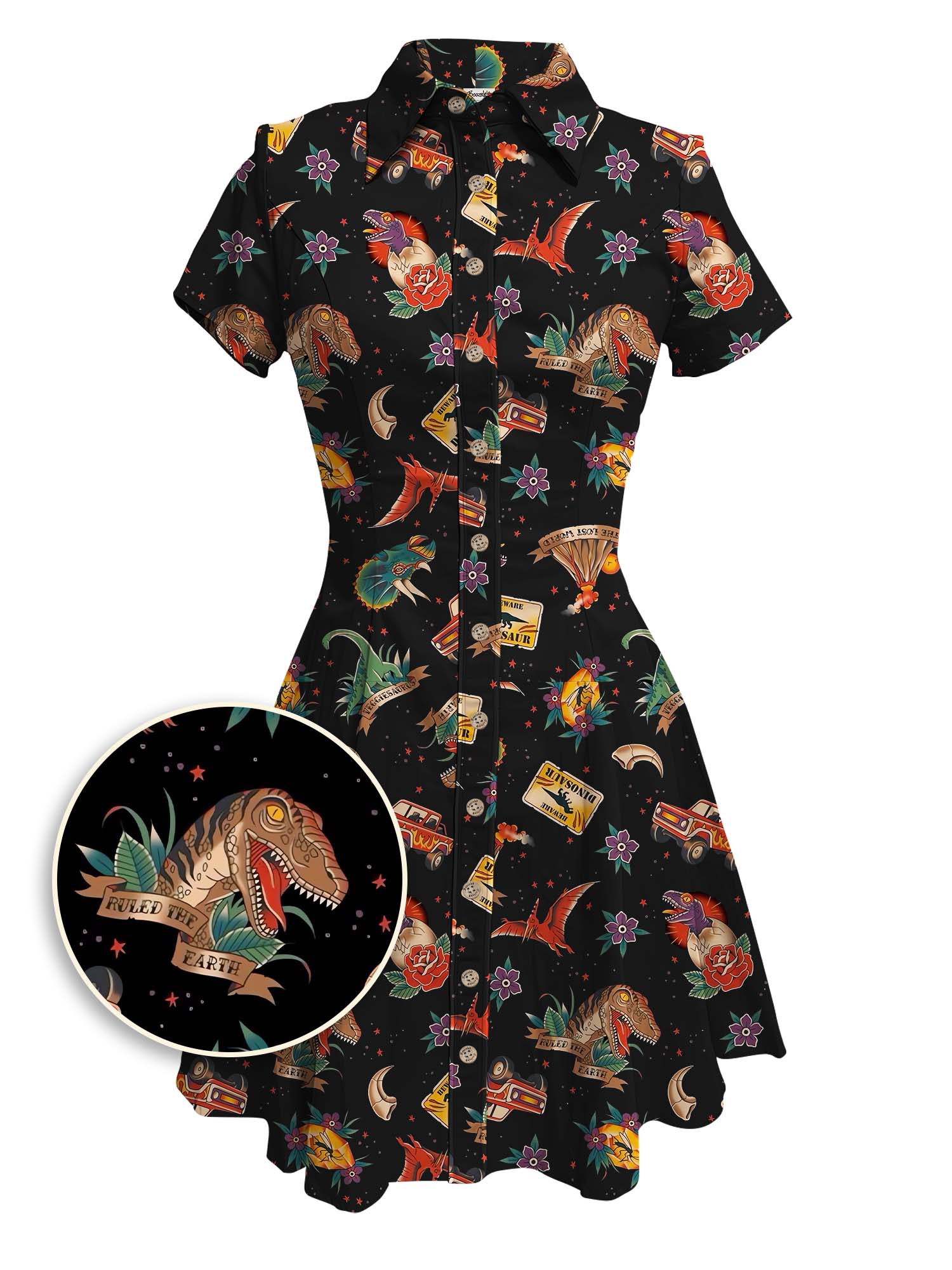 Tattoo Dinosaurs - 100% Cotton Double Pocket Dress