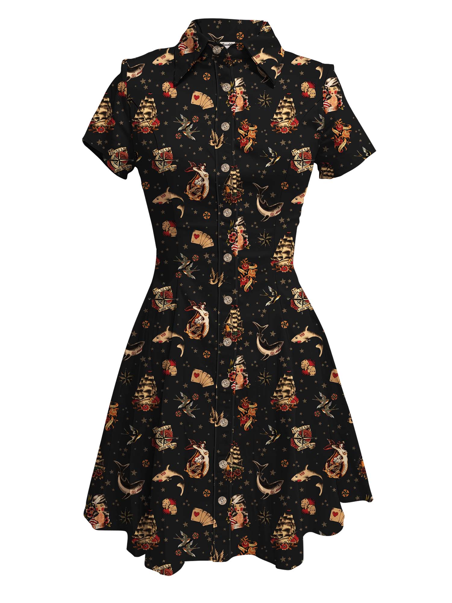 Tattooed Sailor And Mermaid - 100% Cotton Double Pocket Dress