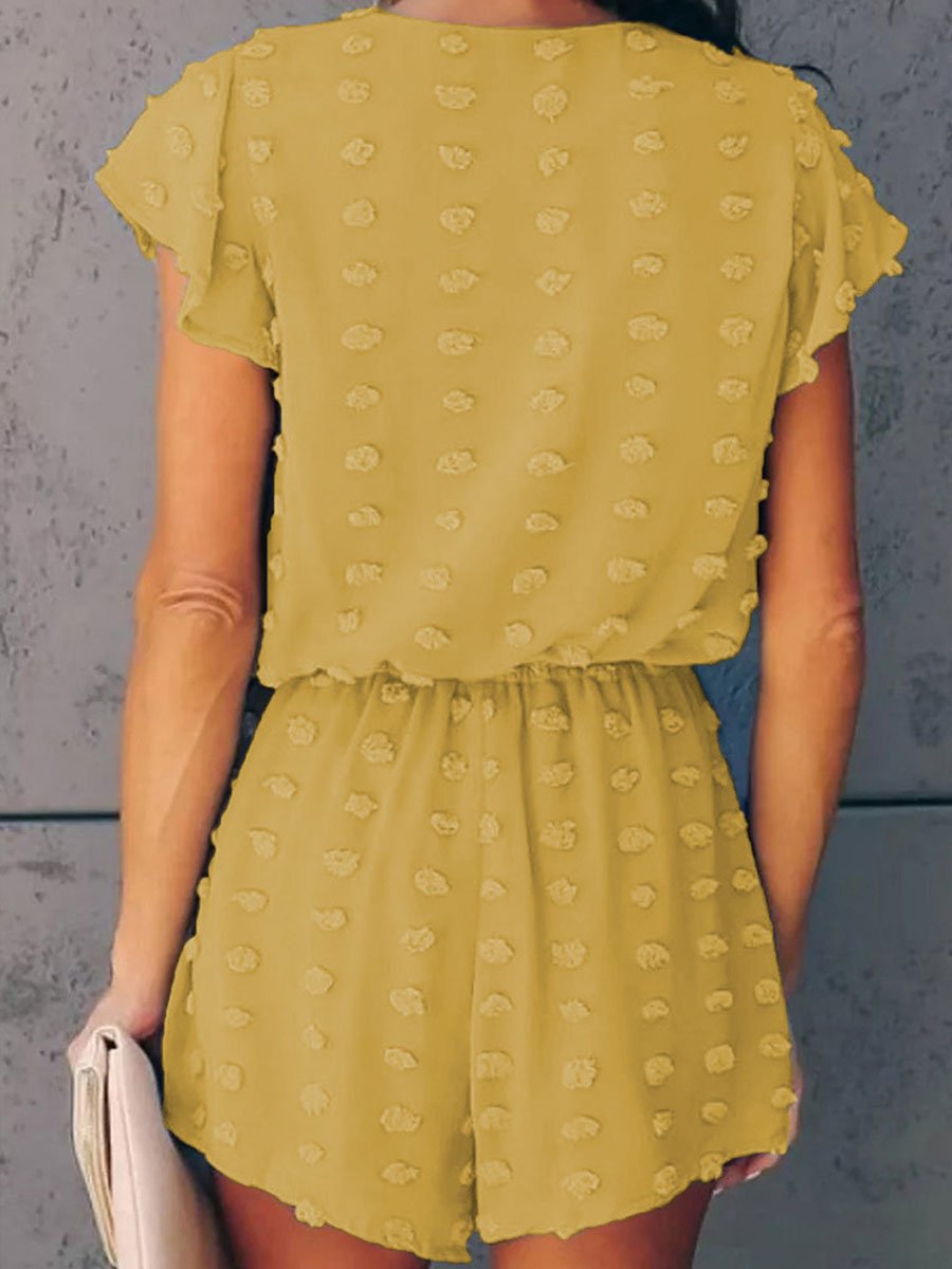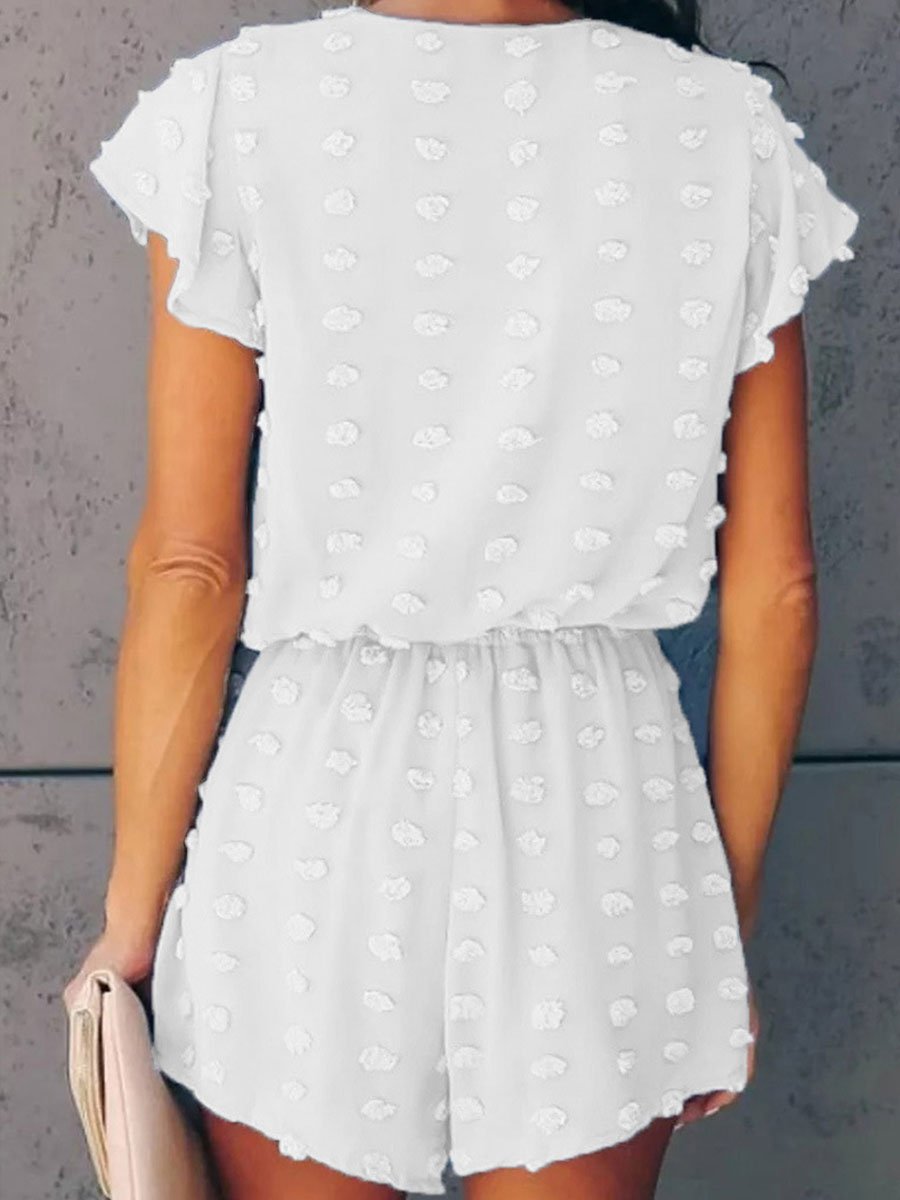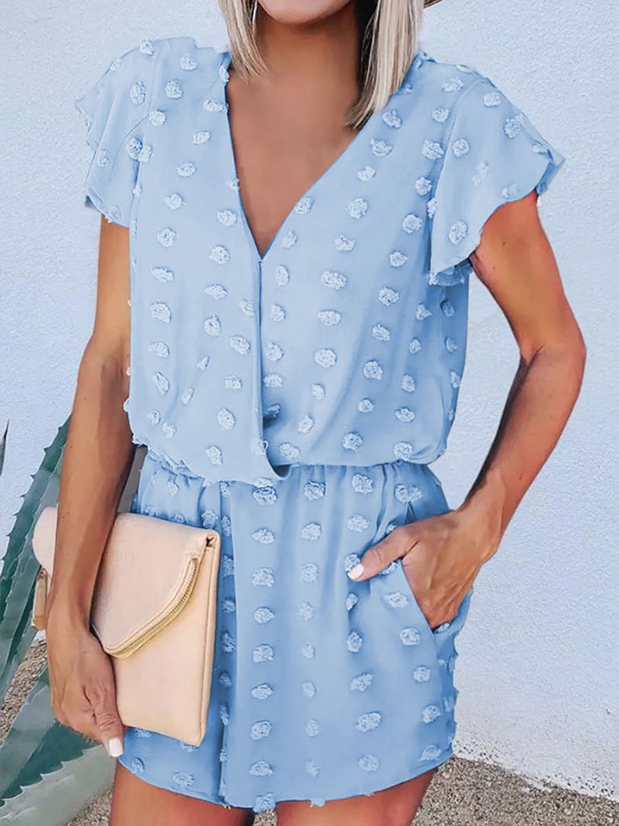 Stay on trend this season in our new casual, v neck Romper. We especially love the polka dot fabric and think this piece will be a new favorite in your closet!