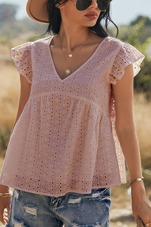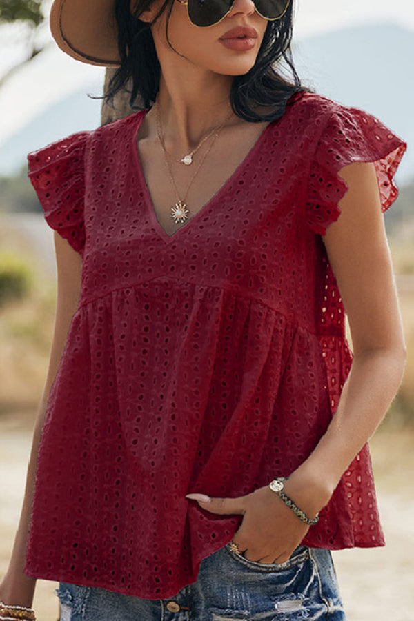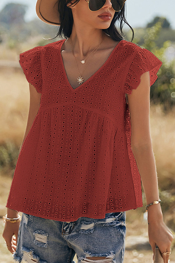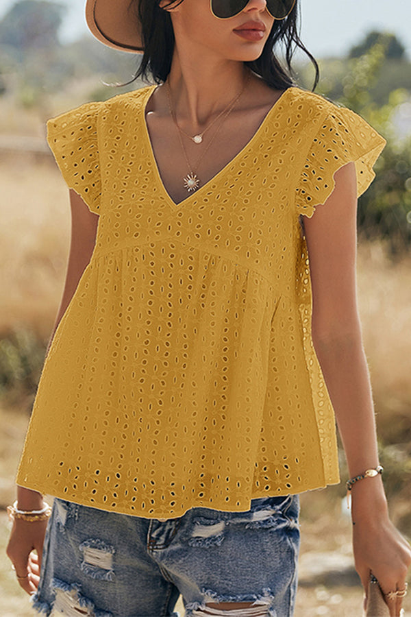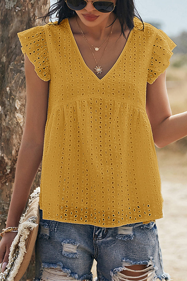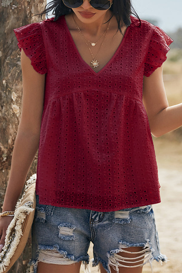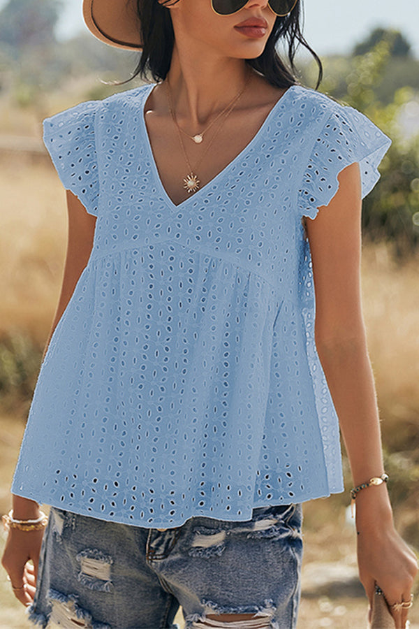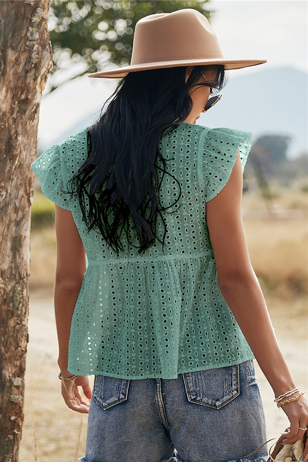 V-neck Lotus Leaf Sleeve Hollow Loose Women's Top