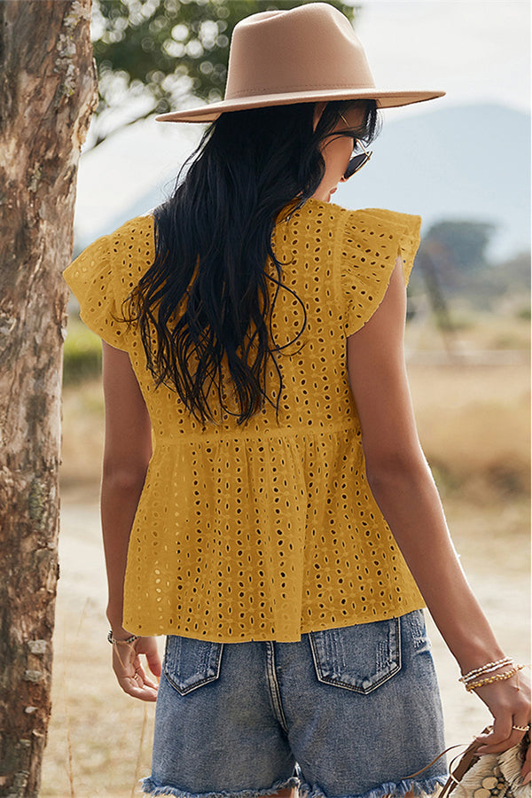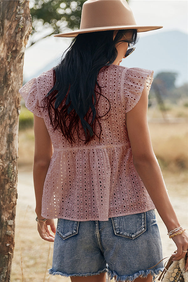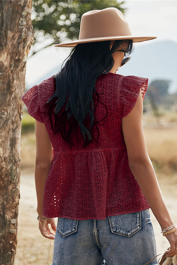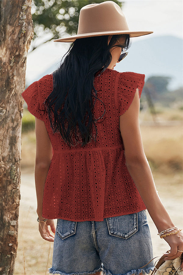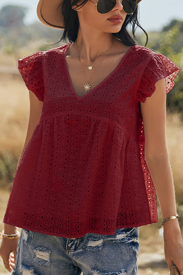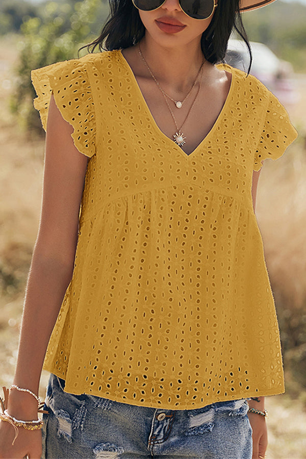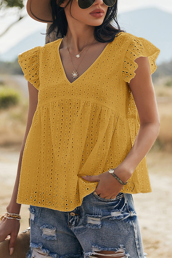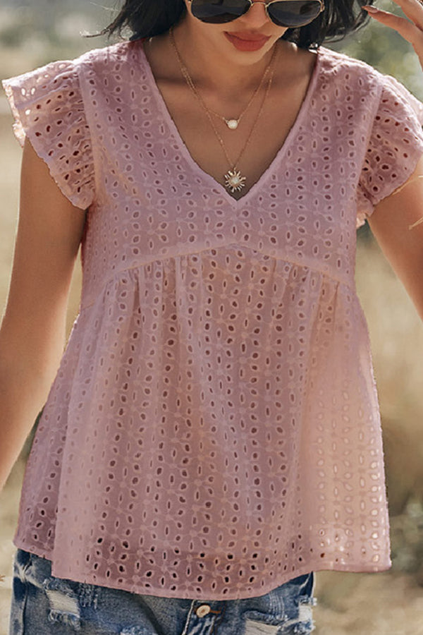 V-neck Lotus Leaf Sleeve Hollow Loose Women's Top