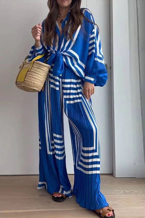 Vacation Chic Attitude Geometric Print Oversized Shirt and Elasticated Wide Leg Pants