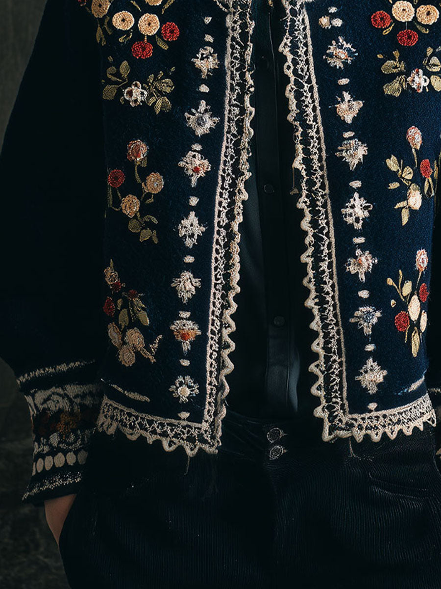 The Vintage Bohemian Floral Embroidered Wool Jacket With Lace Trim is a statement piece that blends artistry with timeless style. Whether you're seeking a standout jacket for a special occasion or an everyday staple that showcases your personal style, this piece is sure to become a beloved addition to your wardrobe.