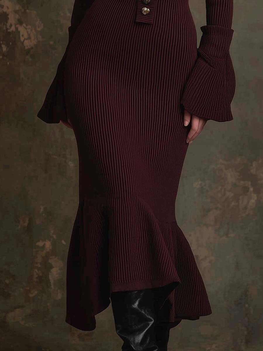 This Vintage Button Detail Square Neck Knit Midi Dress embodies elegance and sophisticated style. Crafted with a textured knit fabric, it features a classic square neckline and delicate button details along the front, adding a touch of vintage charm. The midi length design creates a graceful silhouette that flatters every body type. This dress is a versatile addition to any wardrobe, perfect for any occasion where you want to make a statement.
