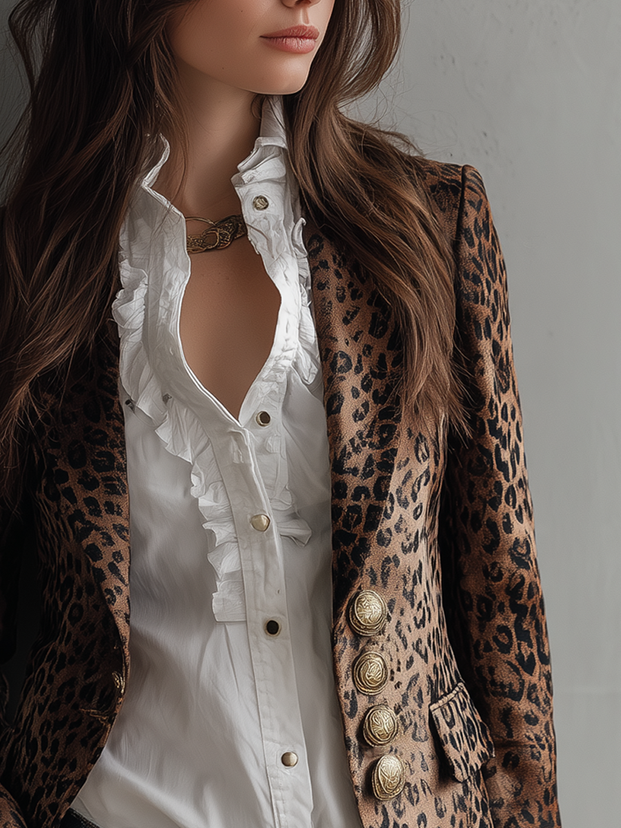 Vintage Button Leopard Print Long-sleeved Blazer