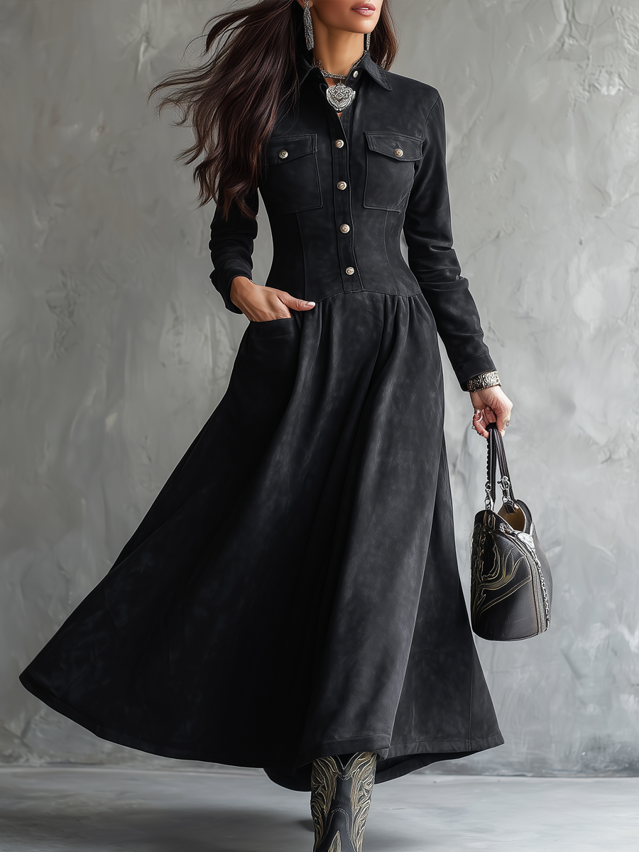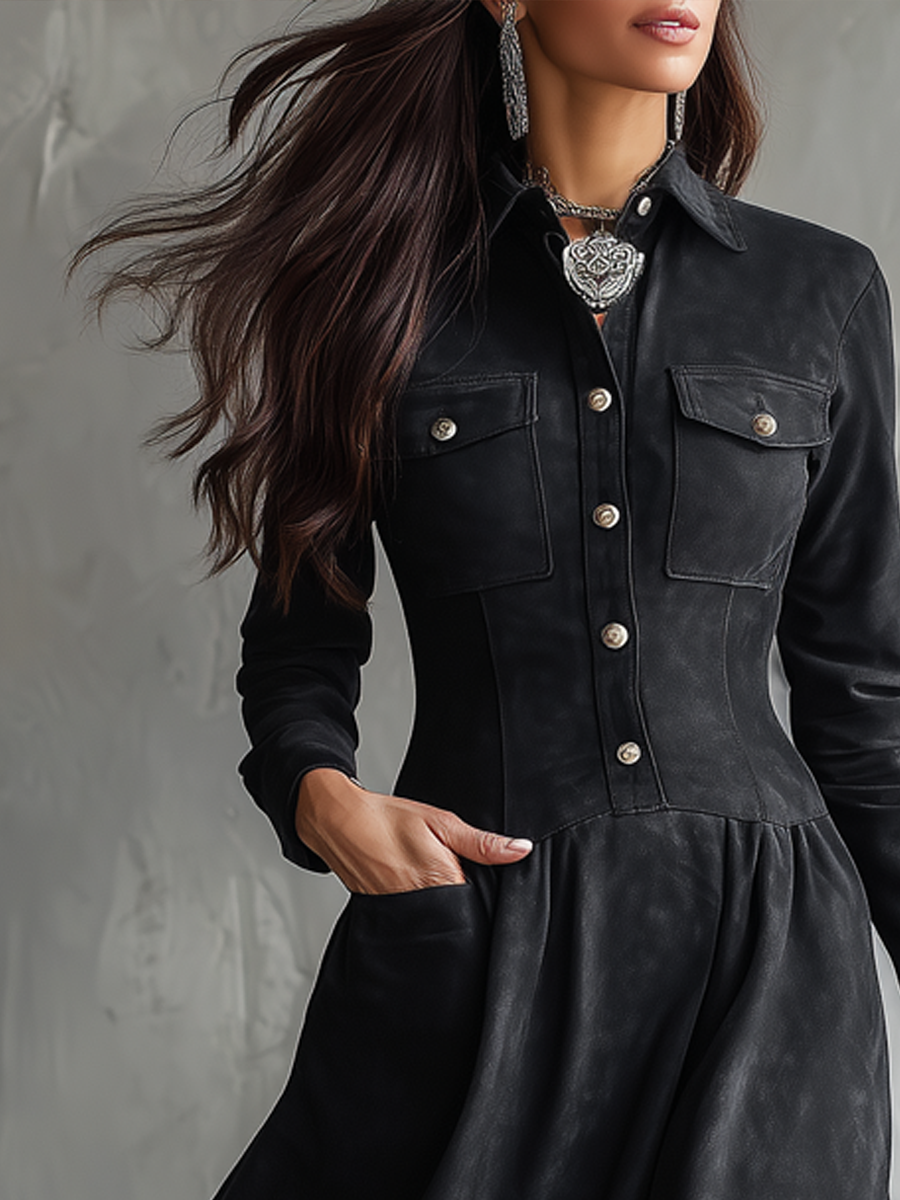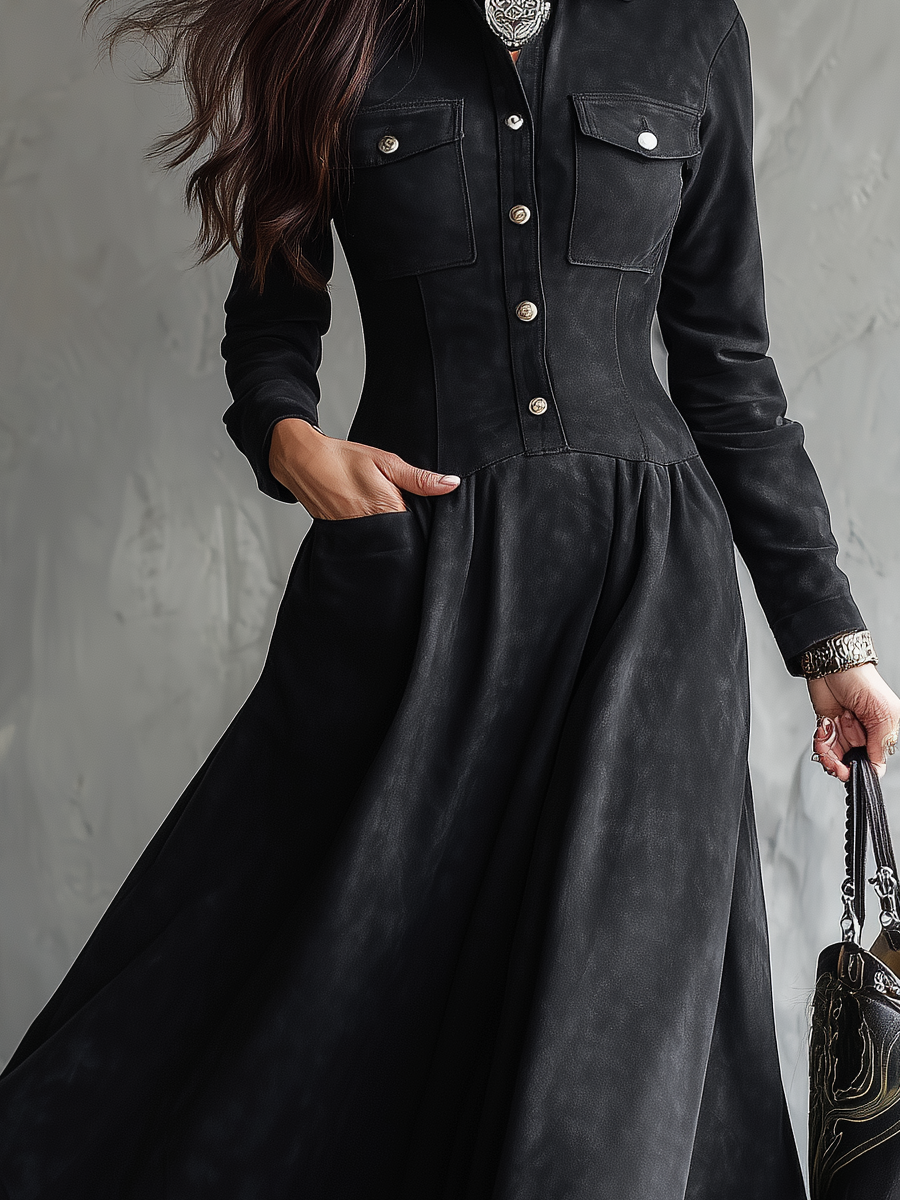 The Vintage Button Long-sleeved Suede Midi Dress is an elegant addition to any wardrobe, combining the elegance of a vintage design with the comfort and style of modern fashion. Its versatile features make it adaptable for various settings, ensuring you look chic and polished wherever you go.
