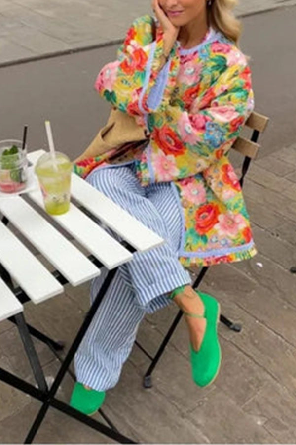 Vintage Flower Print Button Up Lightweight Oversized Cotton Jacket