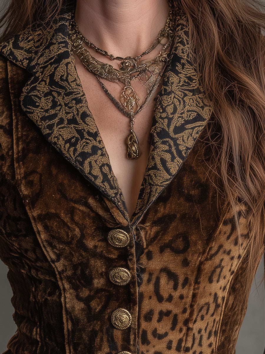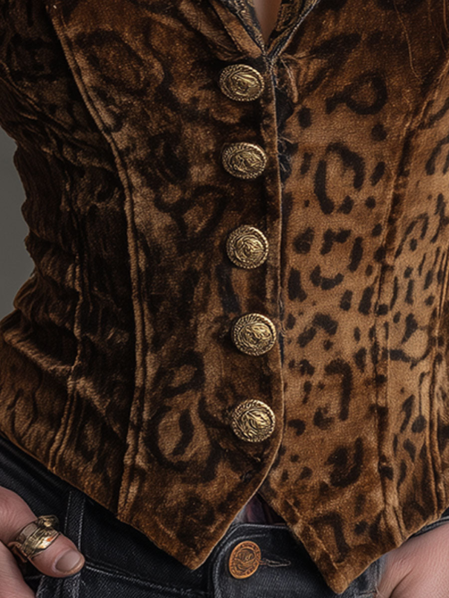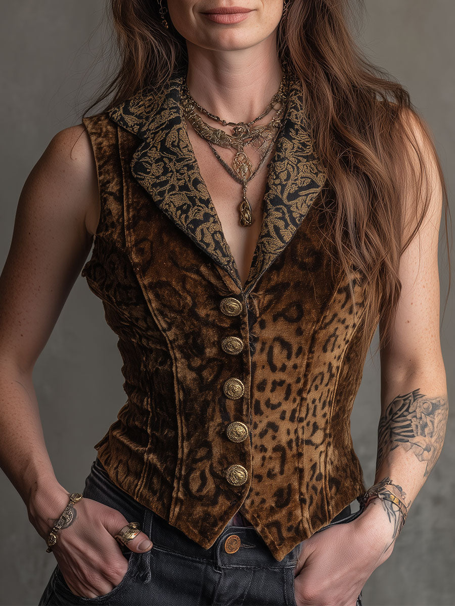 Vintage Leopard Print Gold Velvet Patchwork Vest