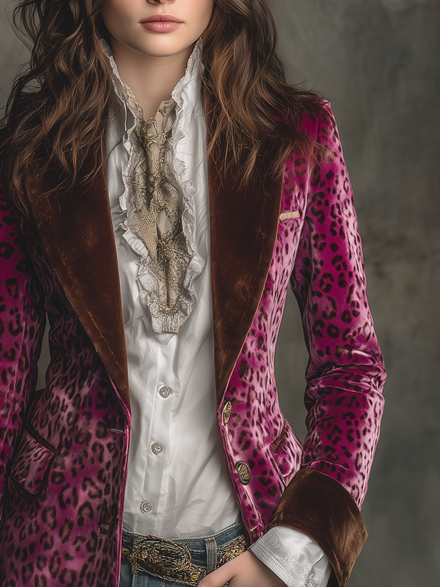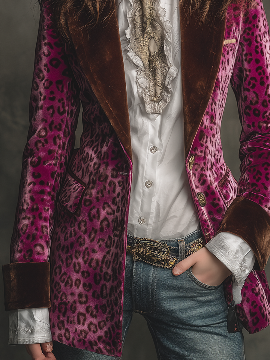 The Vintage Leopard Print Polyester Velvet Blazer is a chic and timeless addition to your wardrobe. Its unique print and luxurious fabric ensure you stand out in any crowd while maintaining an air of classic elegance. Perfect for those who aren't afraid to make a fashion statement.