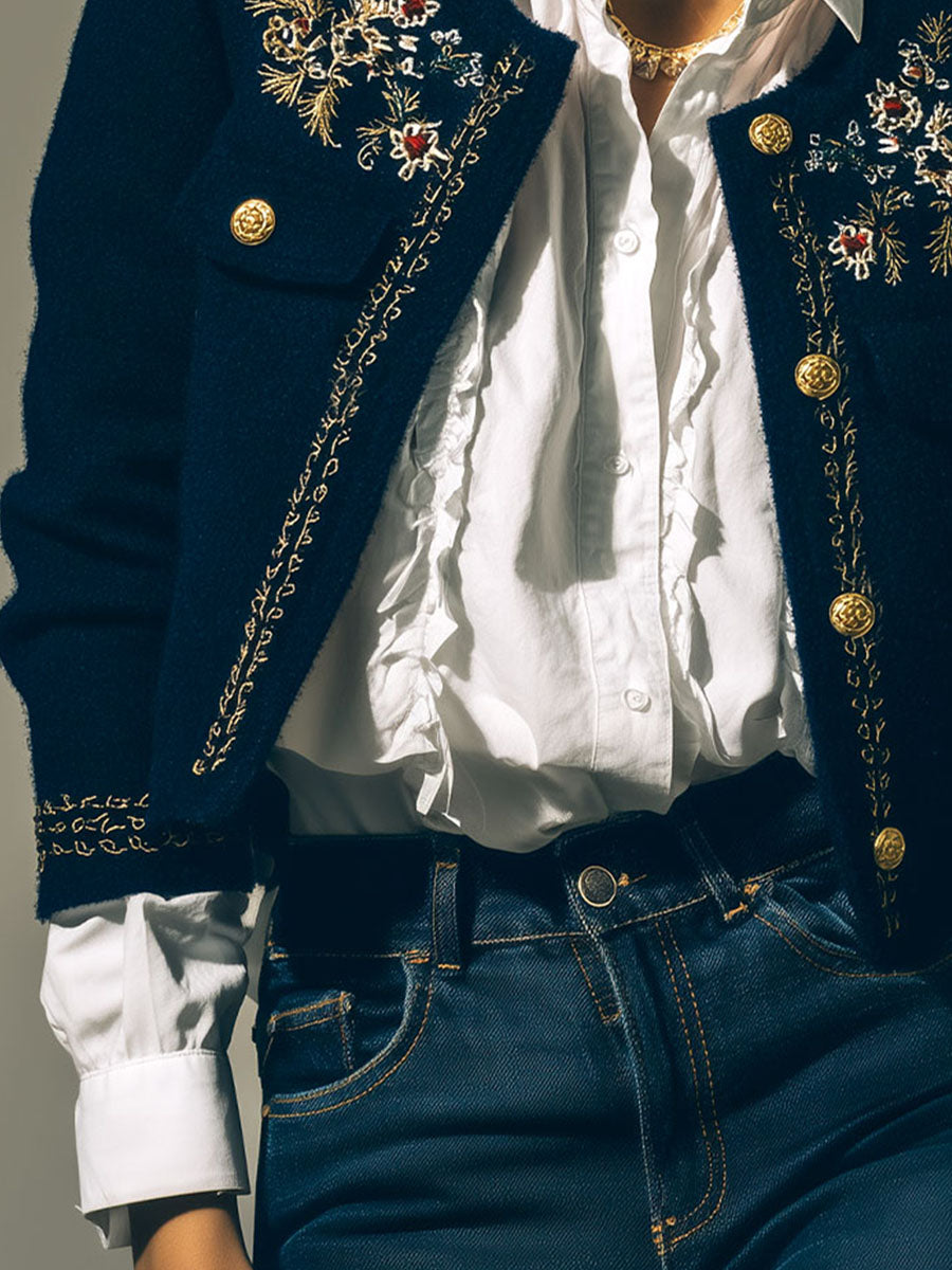 The Vintage Navy Embroidered Cropped Military Jacket is a must-have piece for those who appreciate classic design with a modern edge. Its versatility makes it an excellent choice for various occasions, ensuring you always make a statement while maintaining comfort and flair.