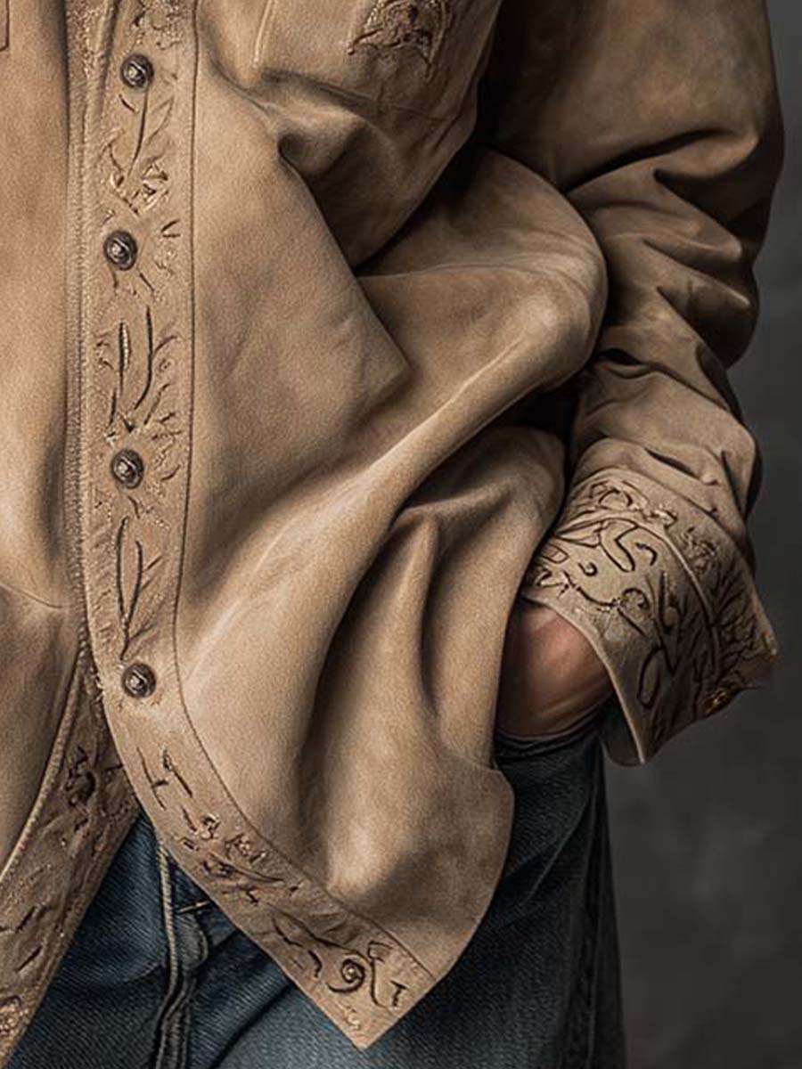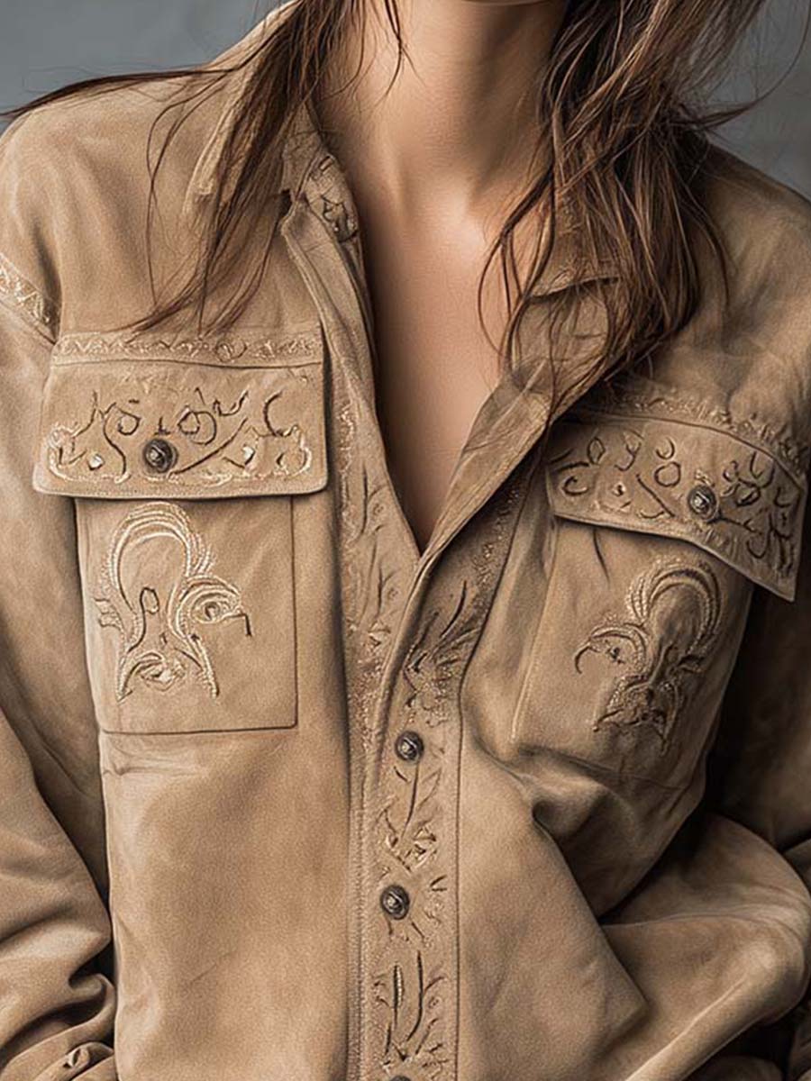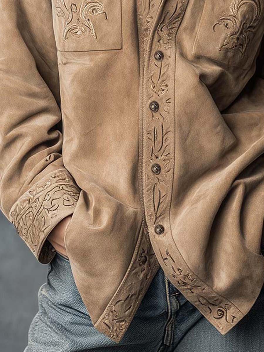 Vintage Tan Suede Embroidered Shirt