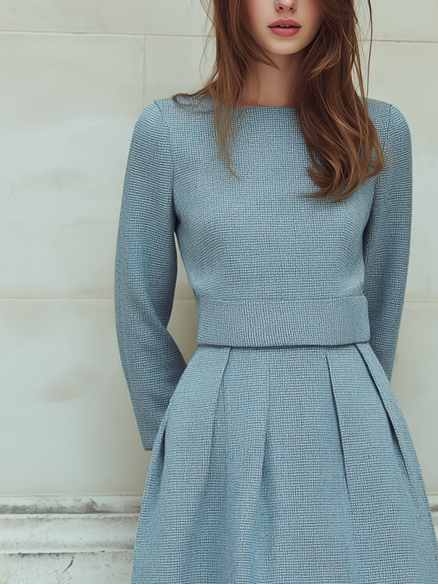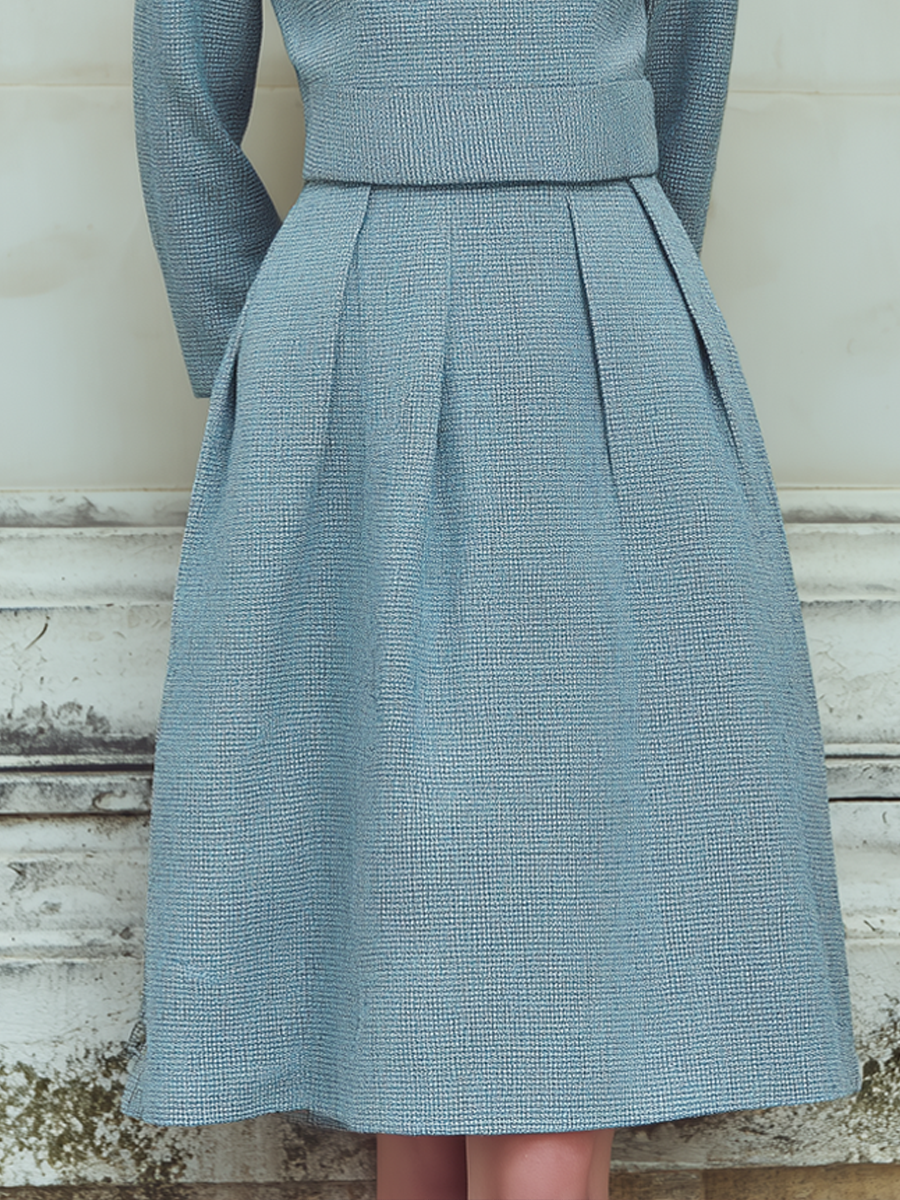 The Vintage Tweed Long-Sleeved Midi Dress embodies classic elegance with a modern twist. Crafted from premium tweed, this dress combines a timeless silhouette with intricate detailing, making it an essential piece for a sophisticated wardrobe. Its midi length and long sleeves add a touch of vintage charm, suitable for various occasions.
