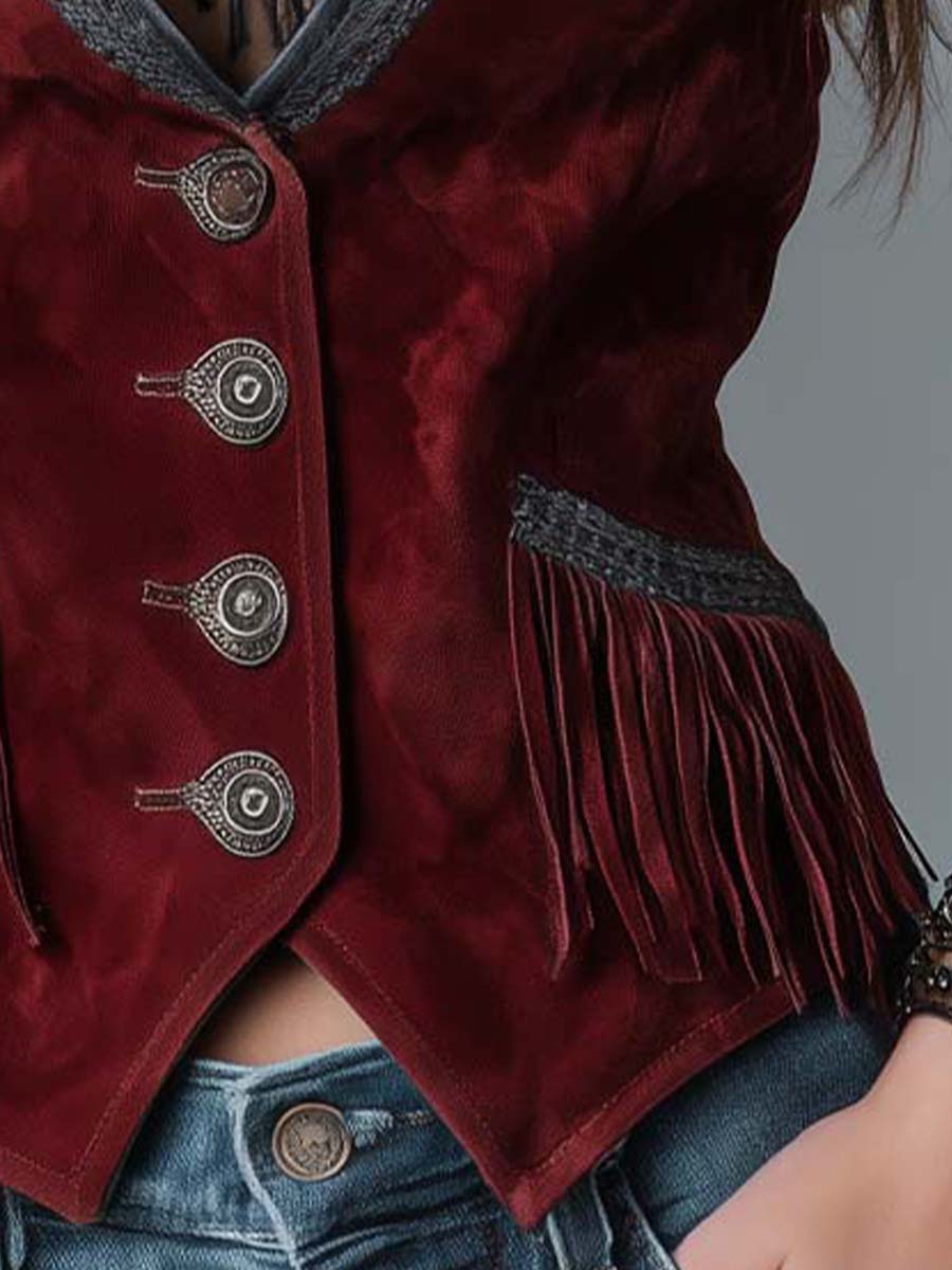 Vintage Western Microsuede With Braided Fringe Slim Fit Vest