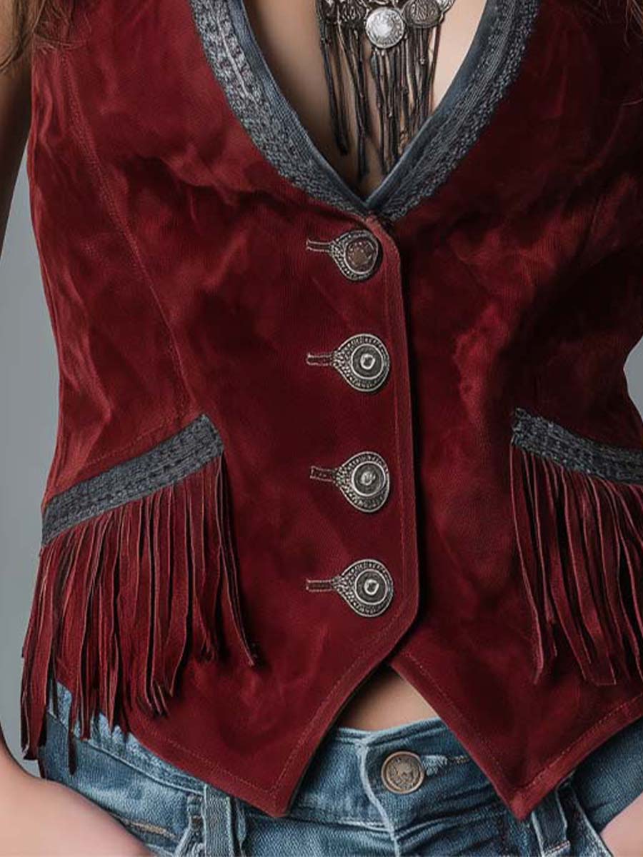 This Vintage Western Microsuede Vest with Braided Fringe is a must-have for anyone looking to add a classic, yet distinctive piece to their wardrobe. Its unique design effortlessly blends the old-world charm of the Wild West with modern fashion tastes, ensuring you stand out at any event.
