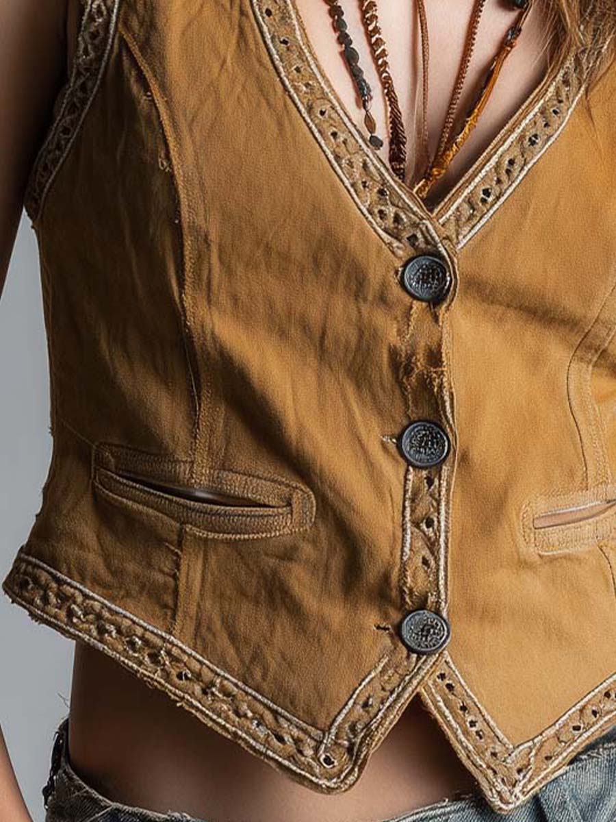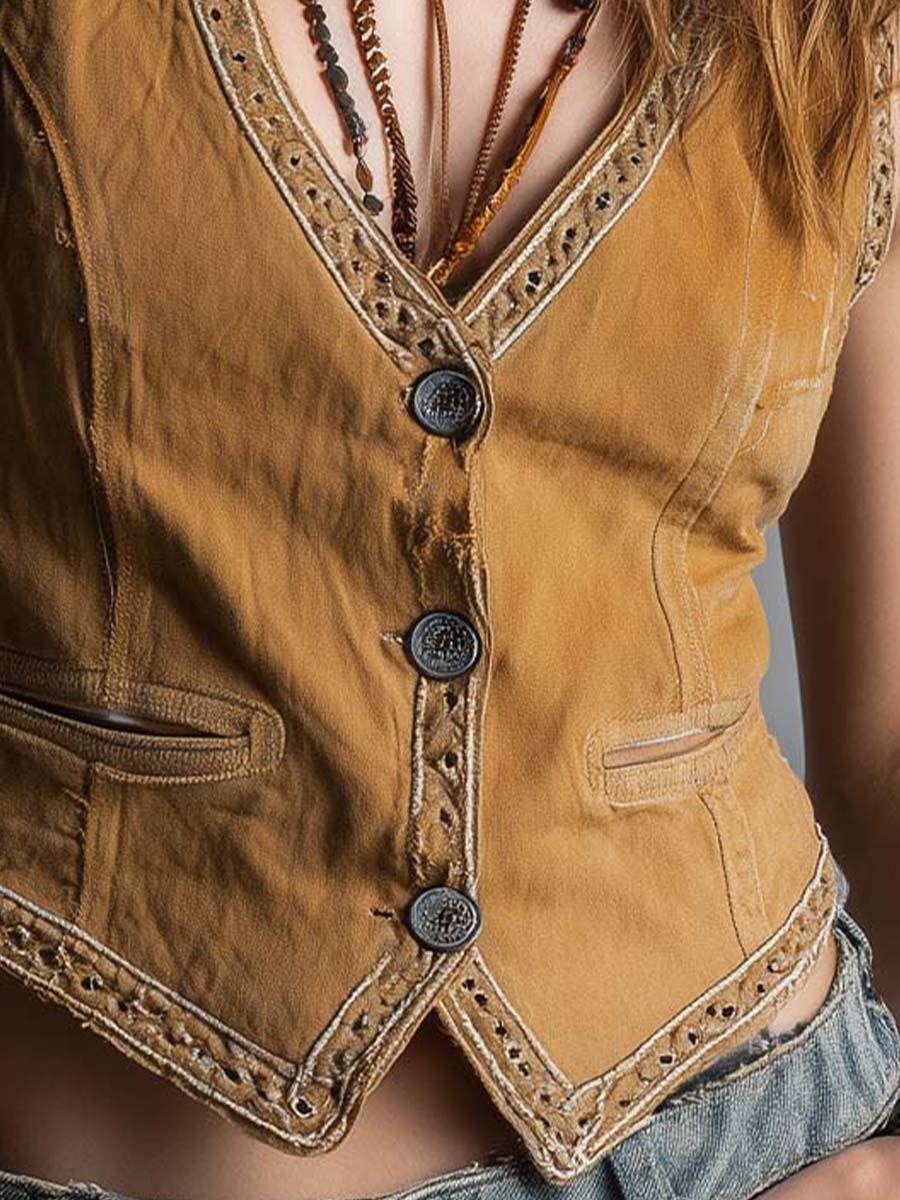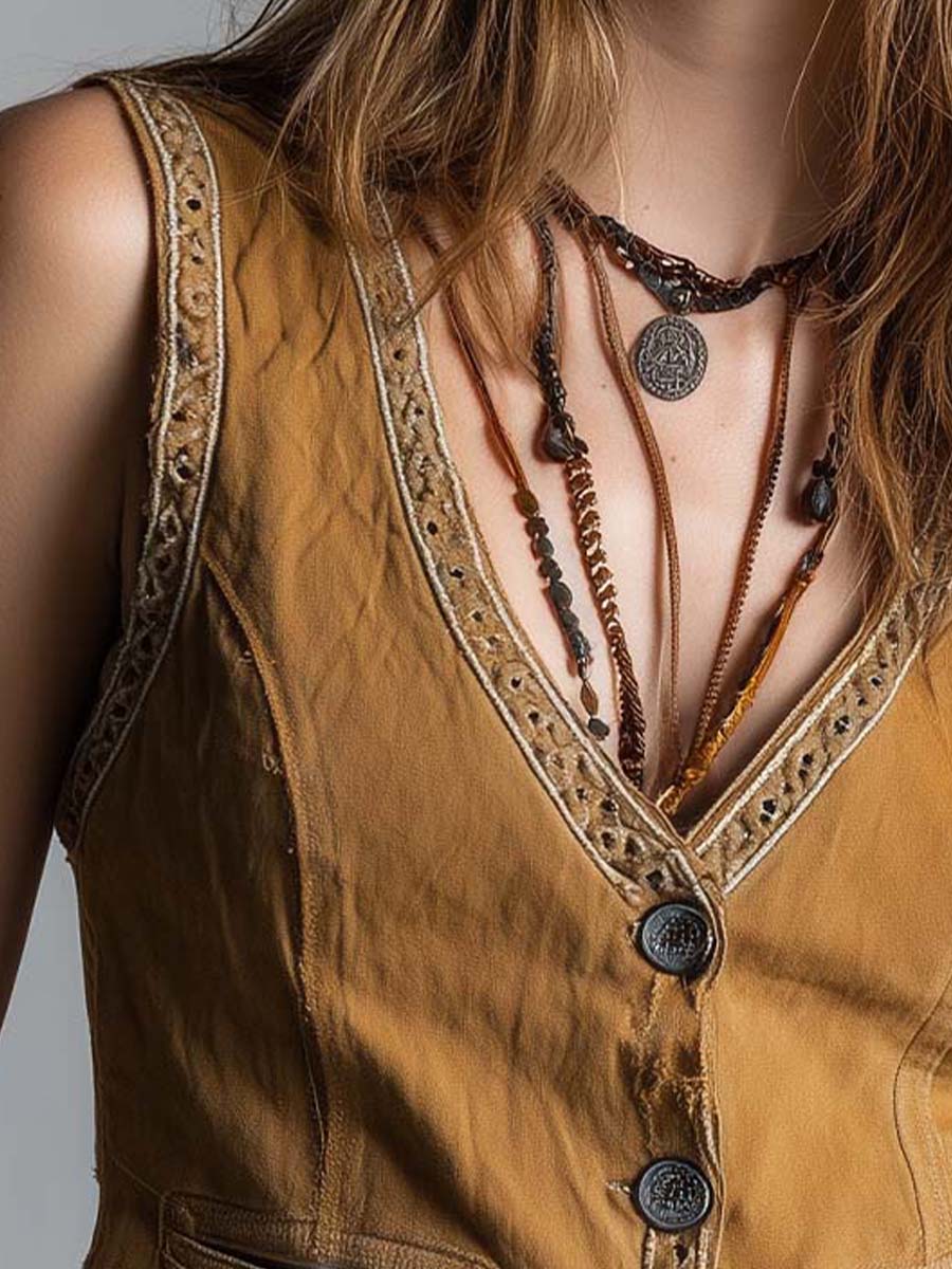 In summary, the Western Bohemian Style Vintage Washed Vest is a must-have for anyone looking to infuse their wardrobe with eclectic flair and vintage appeal. Its quality construction, distinctive design, and versatility make it a timeless addition that you'll reach for time and again.