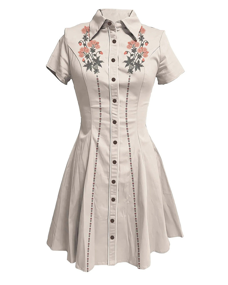 Western Classic Flower Lapel Shirt Dress