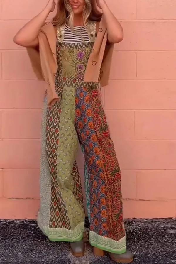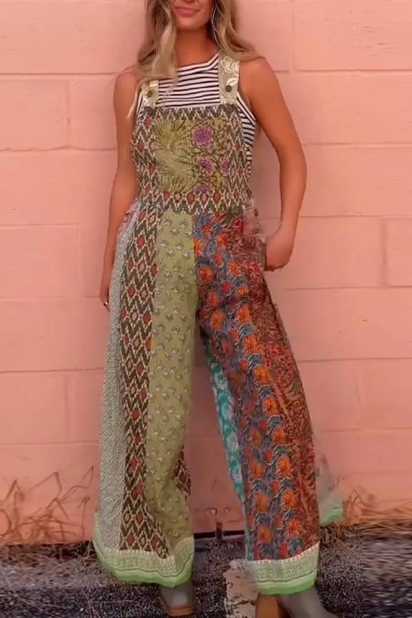 Women Different Printed Colorful Temperament Casual Jumpsuit