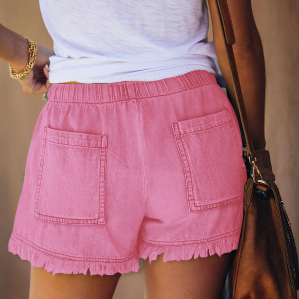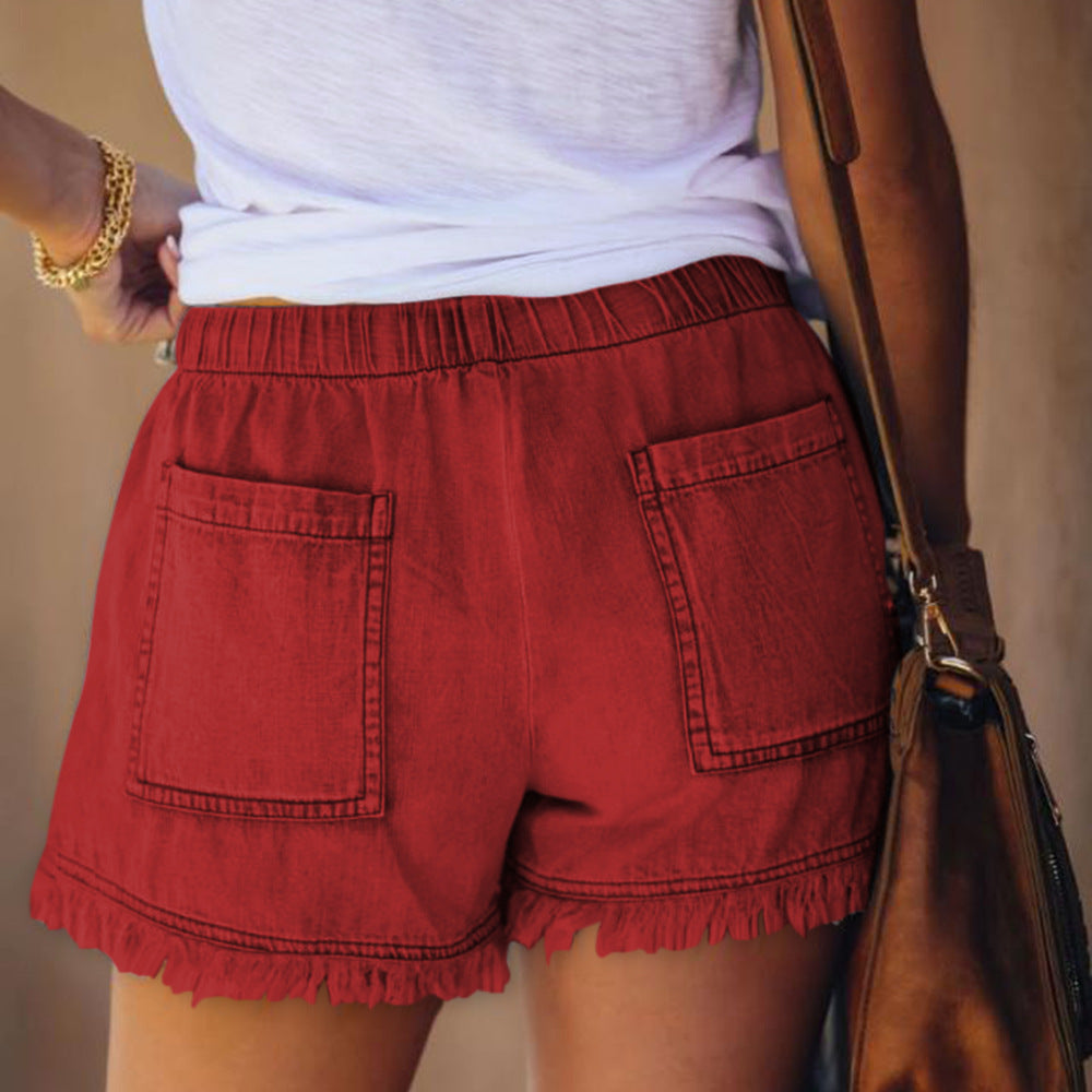 Women's Elastic Drawstring Casual High Waist Thin Denim Shorts