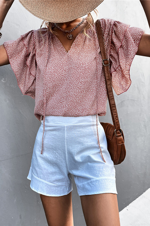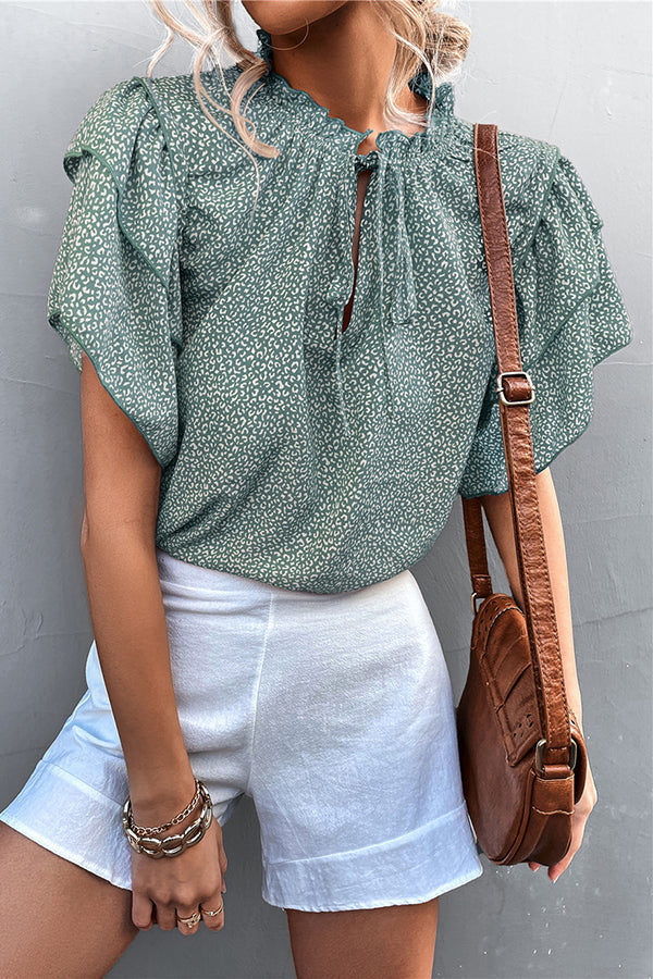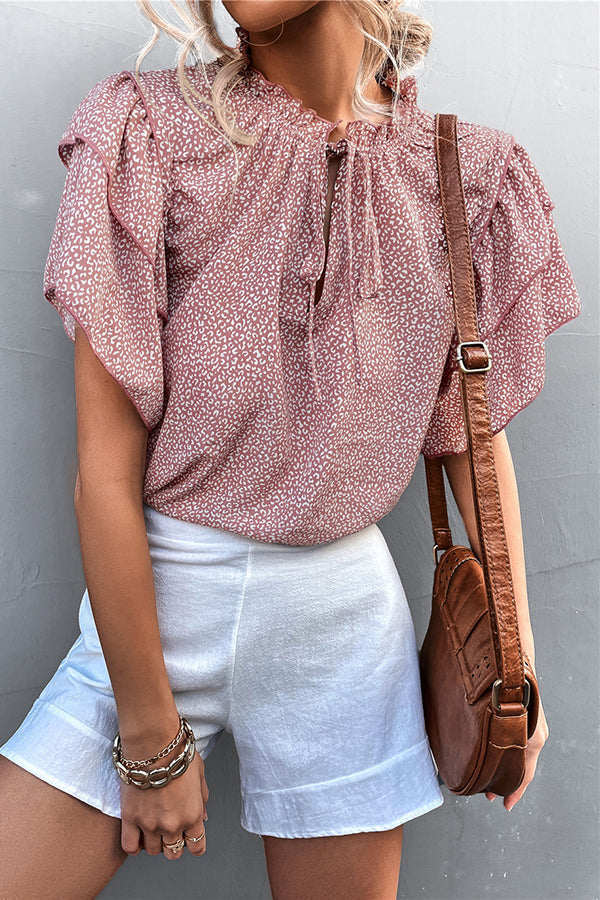 Women's Lace-up V-neck Leopard Print Top Casual T-shirt
