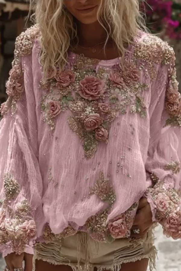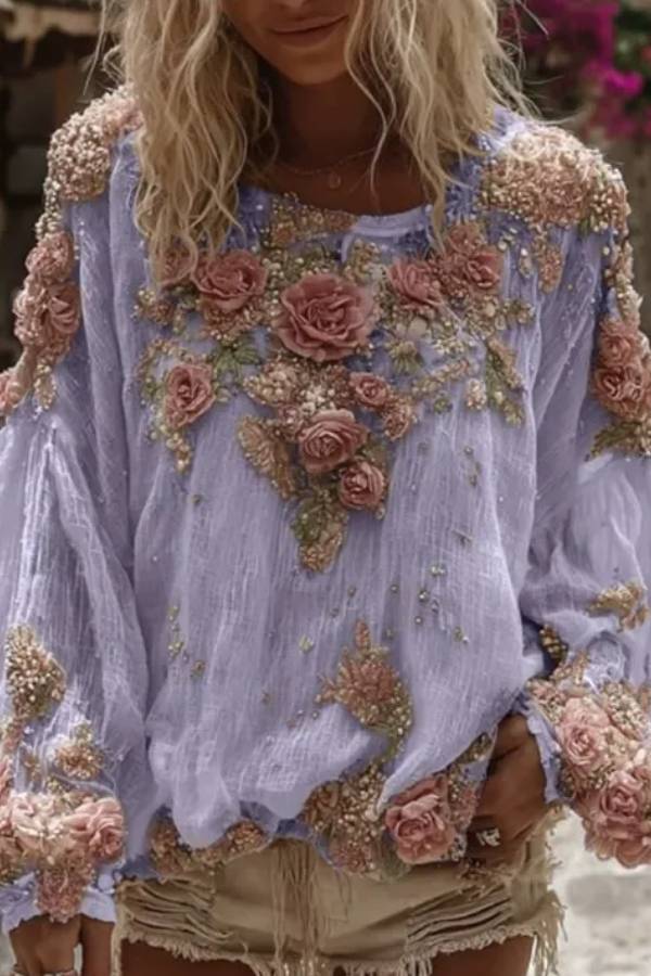 Selected soft fabrics, loose version combined with romantic lantern sleeves, the body of the dress is embellished with exquisite three-dimensional flowers and beaded embroidery, and multiple colors are available. It is full of Bohemian romantic retro feeling. Whether it is on vacation or daily outings, it can create a soft and eye-catching look.