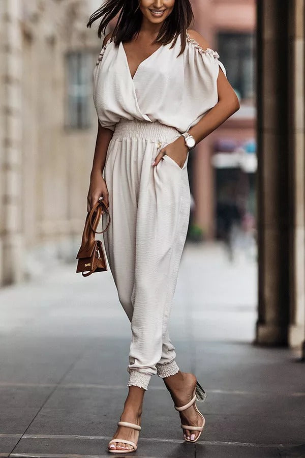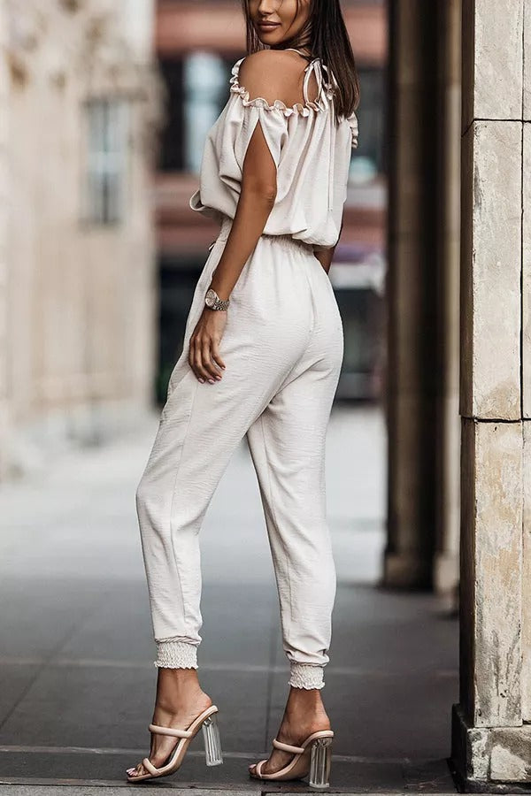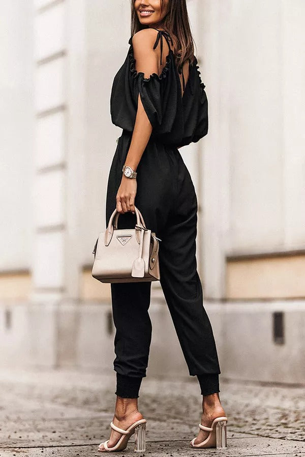 Wonderful Ideas Ruffle Cold Shoulder Jumpsuit