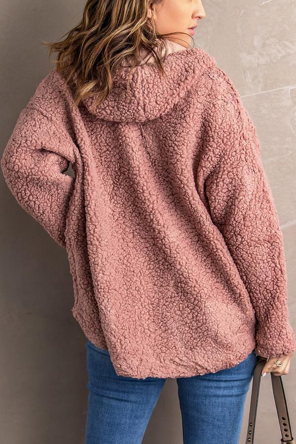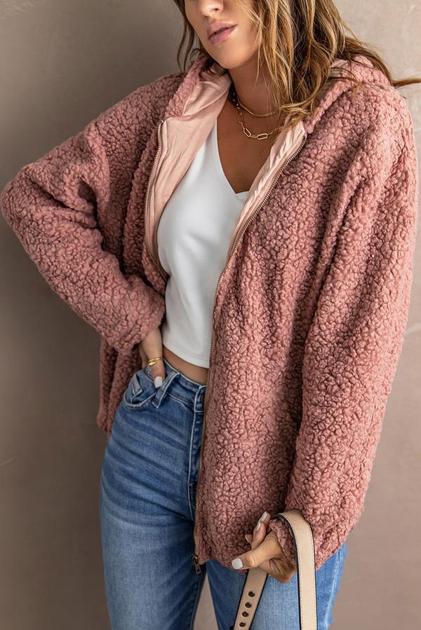 Zip Up Sherpa Hooded Coat with Pocket