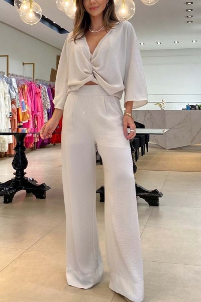 Laguna Resort Kink Shirt and Pocketed Wide Leg Pants Set with Cami Top
