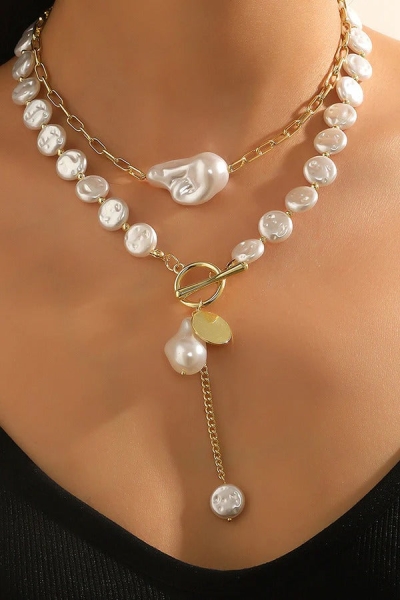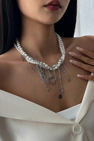 Elegant Pearl Beaded Tassel Heart Chain Necklace