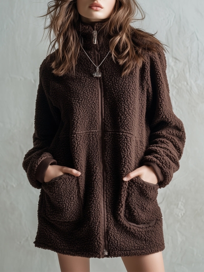 Stylish Polar Fleece Front Zipper Straight Mini Dress