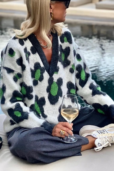 Cosy October Knit Flower Pattern Loose Pullover Sweater