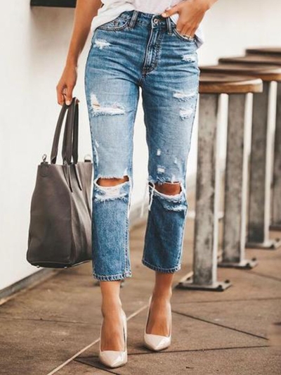 Casual Distressed Ripped Straight Jeans